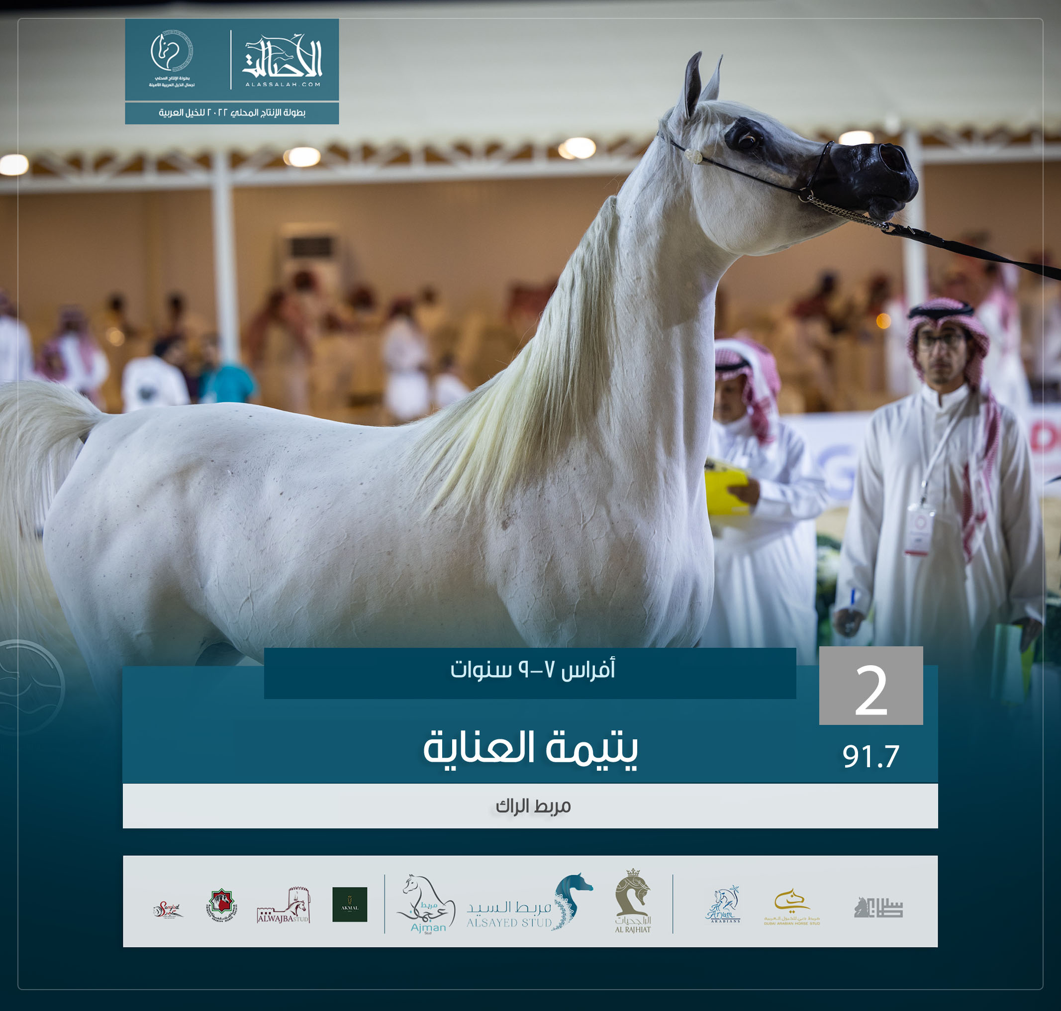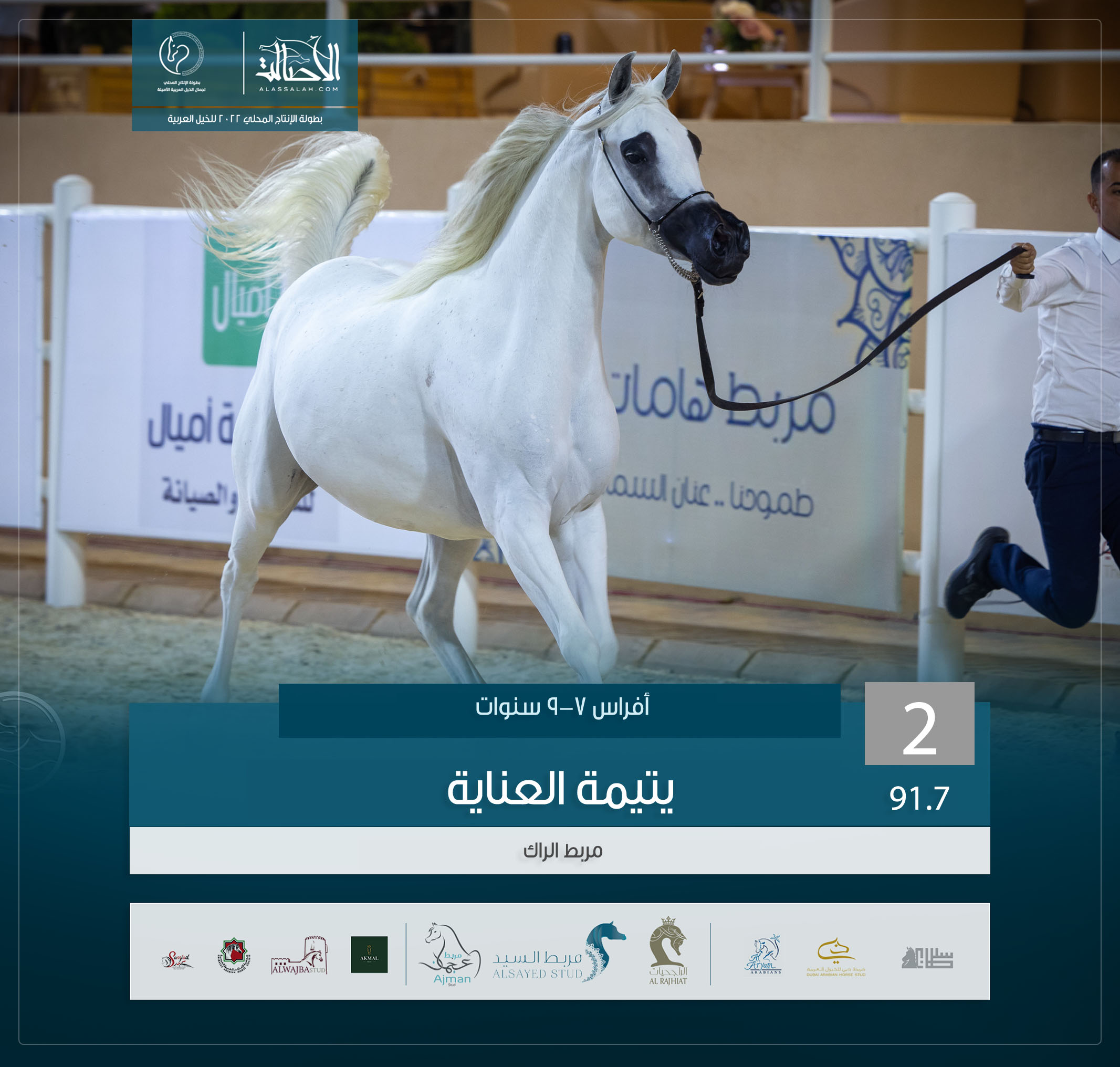 المركز الثاني: يتيمة العناية (عجمان مونسيون x لوف شاك آي ايه) مربط الراك. 91.70 نقطة.