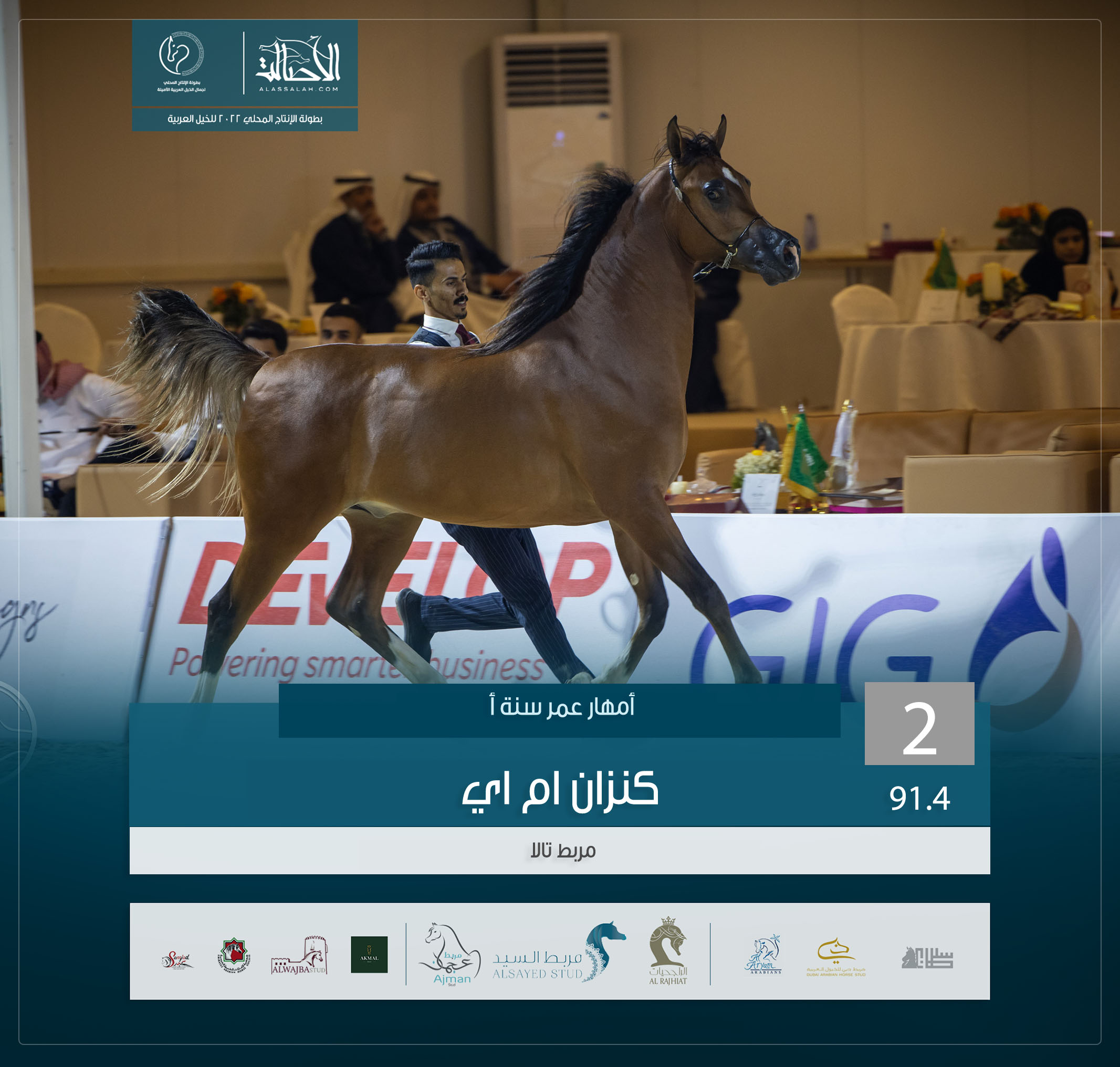 المركز الثاني: كنزان ام ايه (جميل الميدان x سوفيا ار ايه ار) مربط محمد أمين الهاشم. 91.40 نقطة.