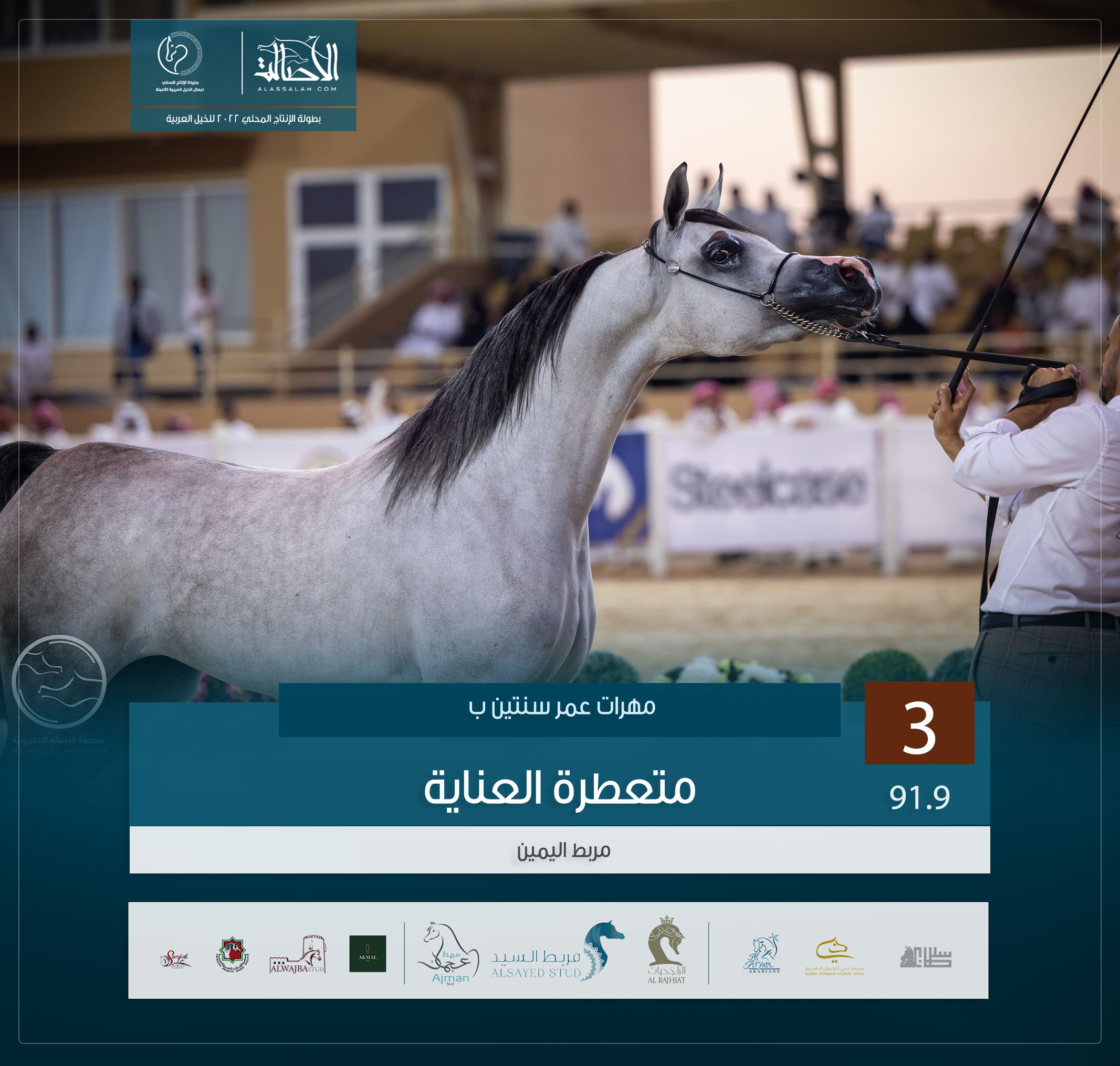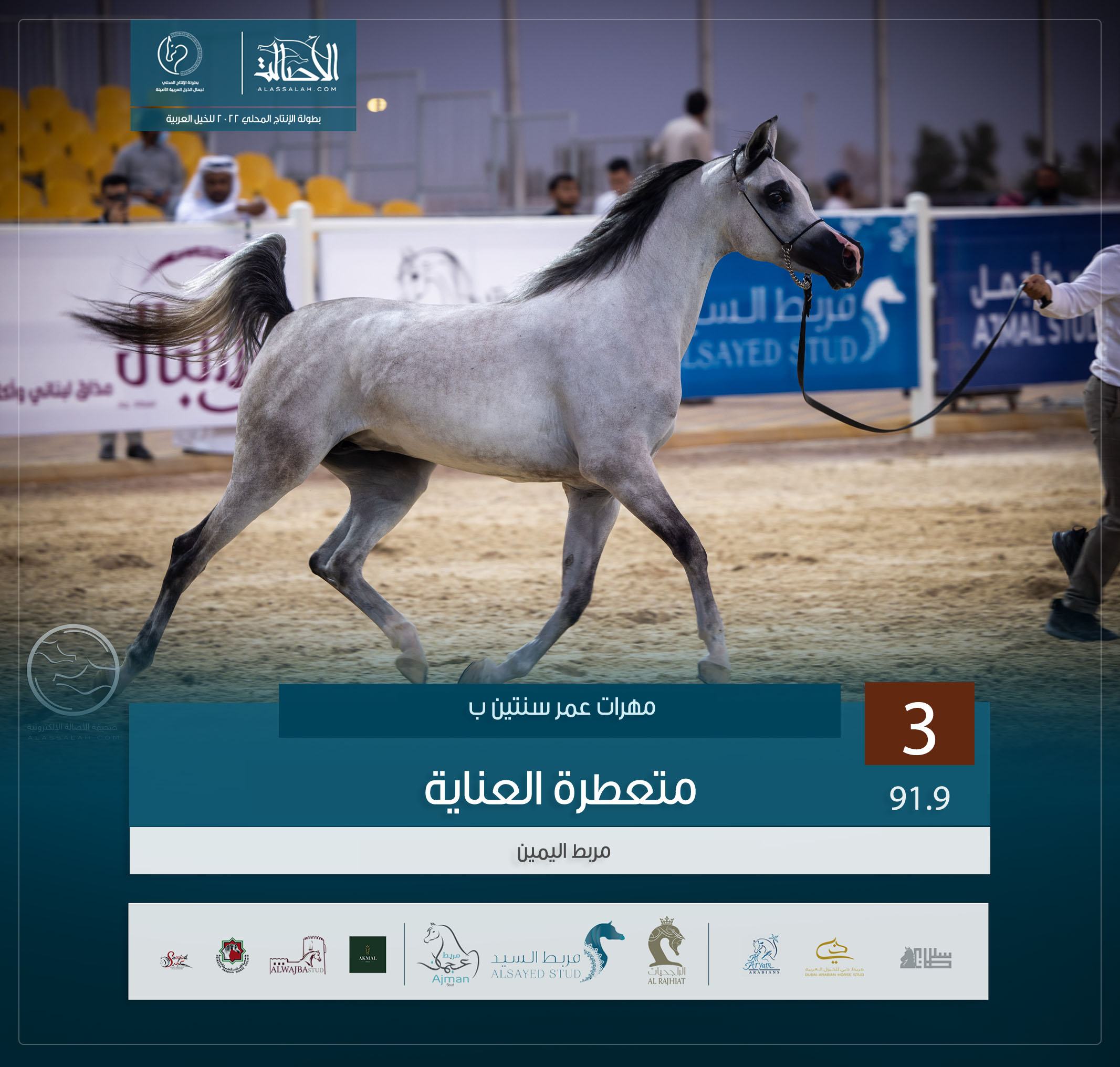 المركز الثالث: متعطرة العناية ( سلطان العناية x تباشير الخالدية) مربط اليمين. 91.90 نقطة.
