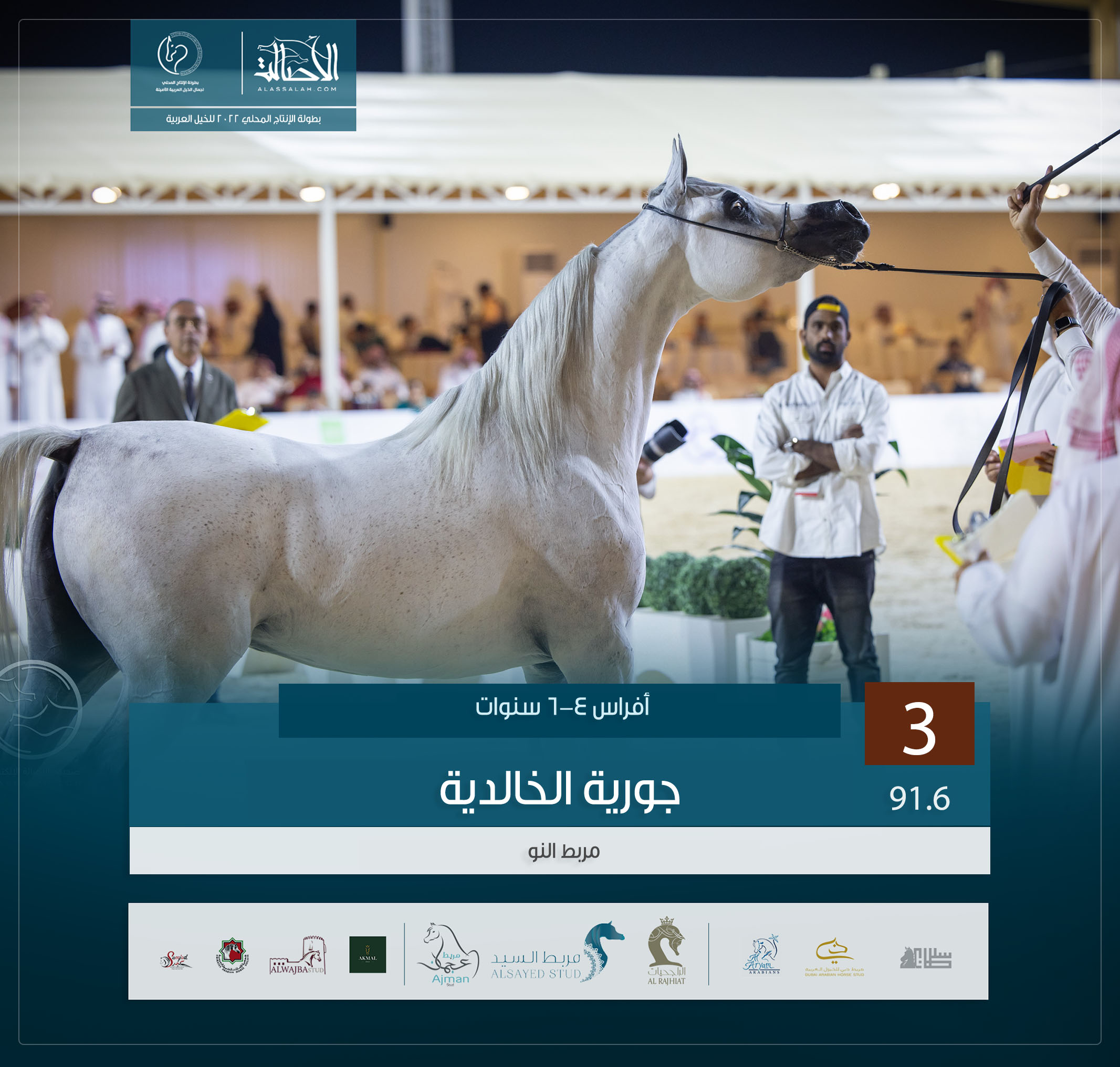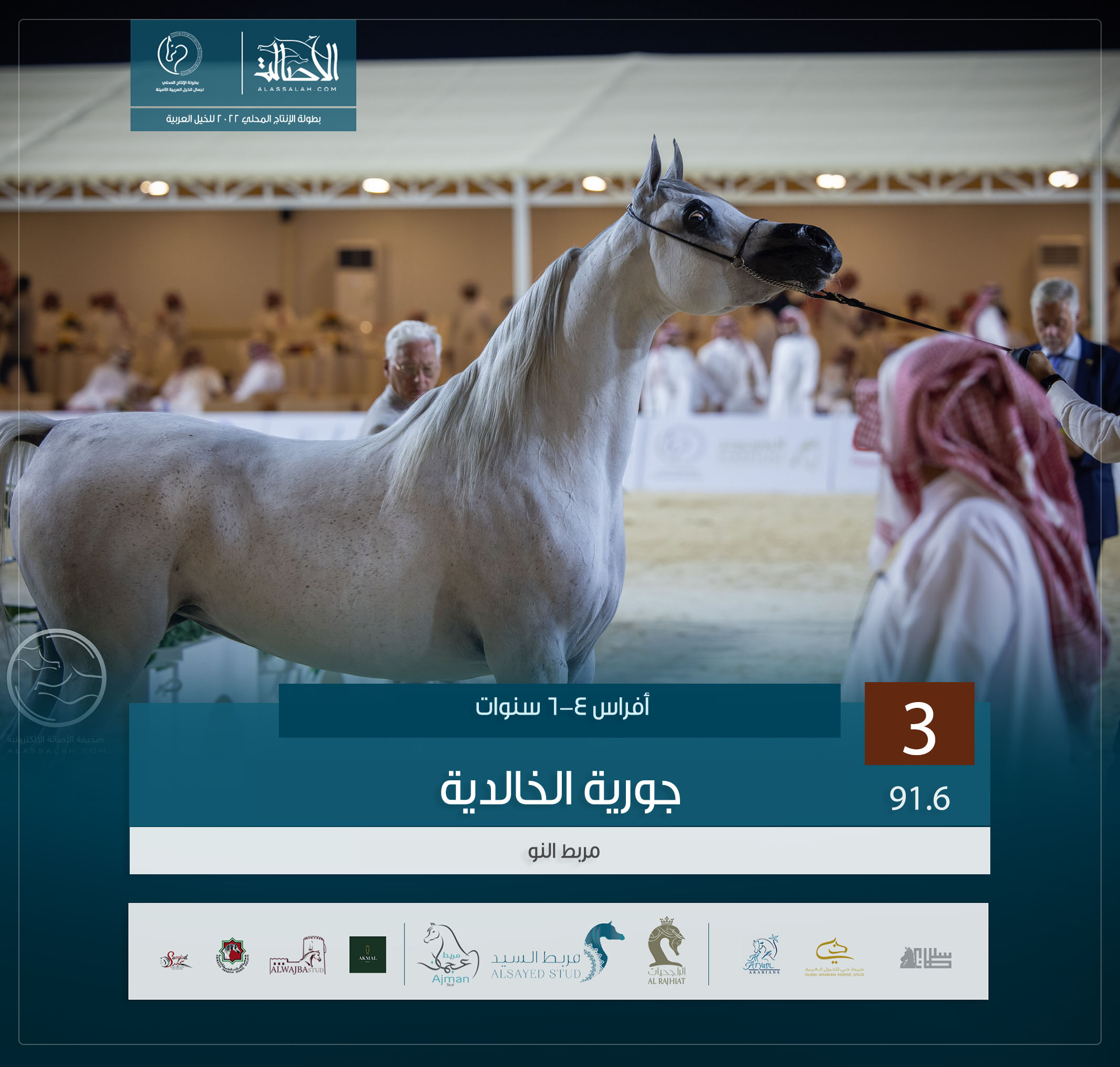 المركز الثالث: جوريه الخالدية ( يعسوب المعود x بنت بسوليا) مربط النو. 91.60 نقطة.