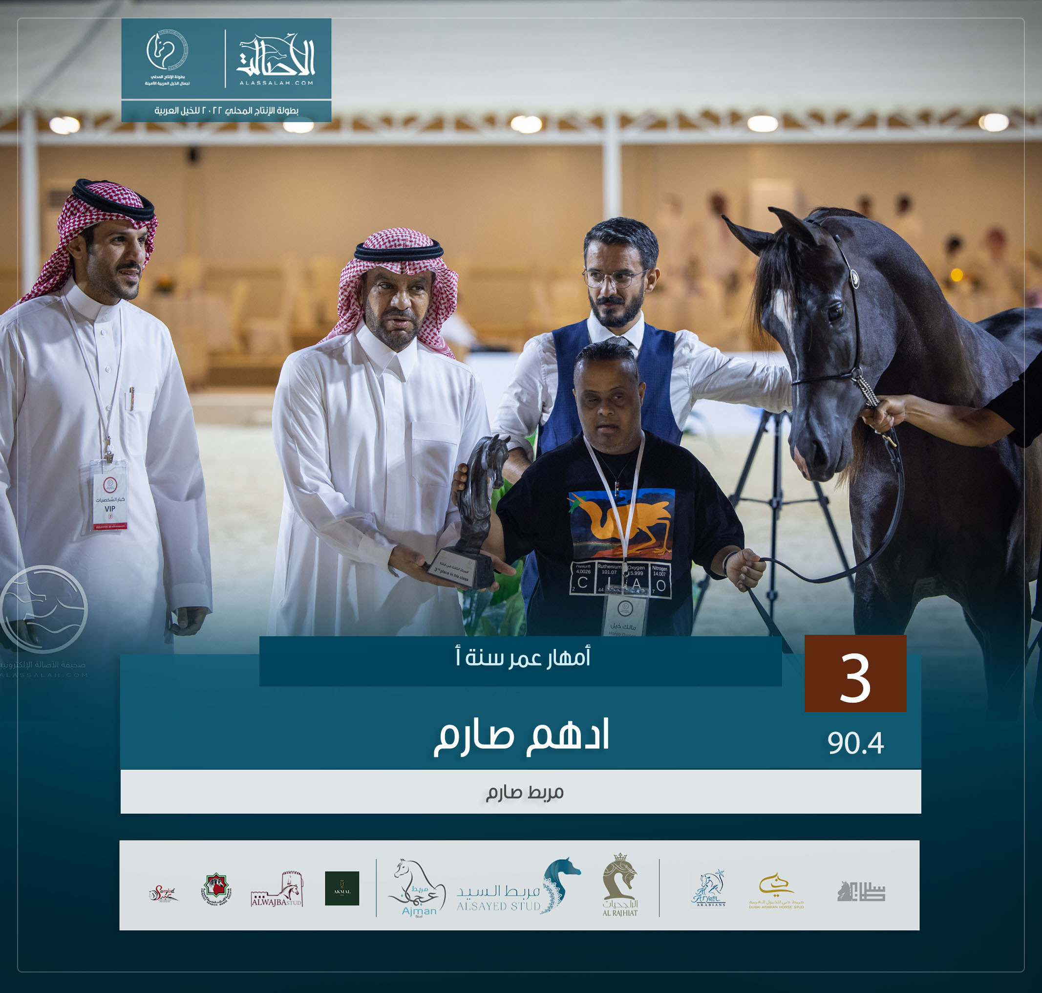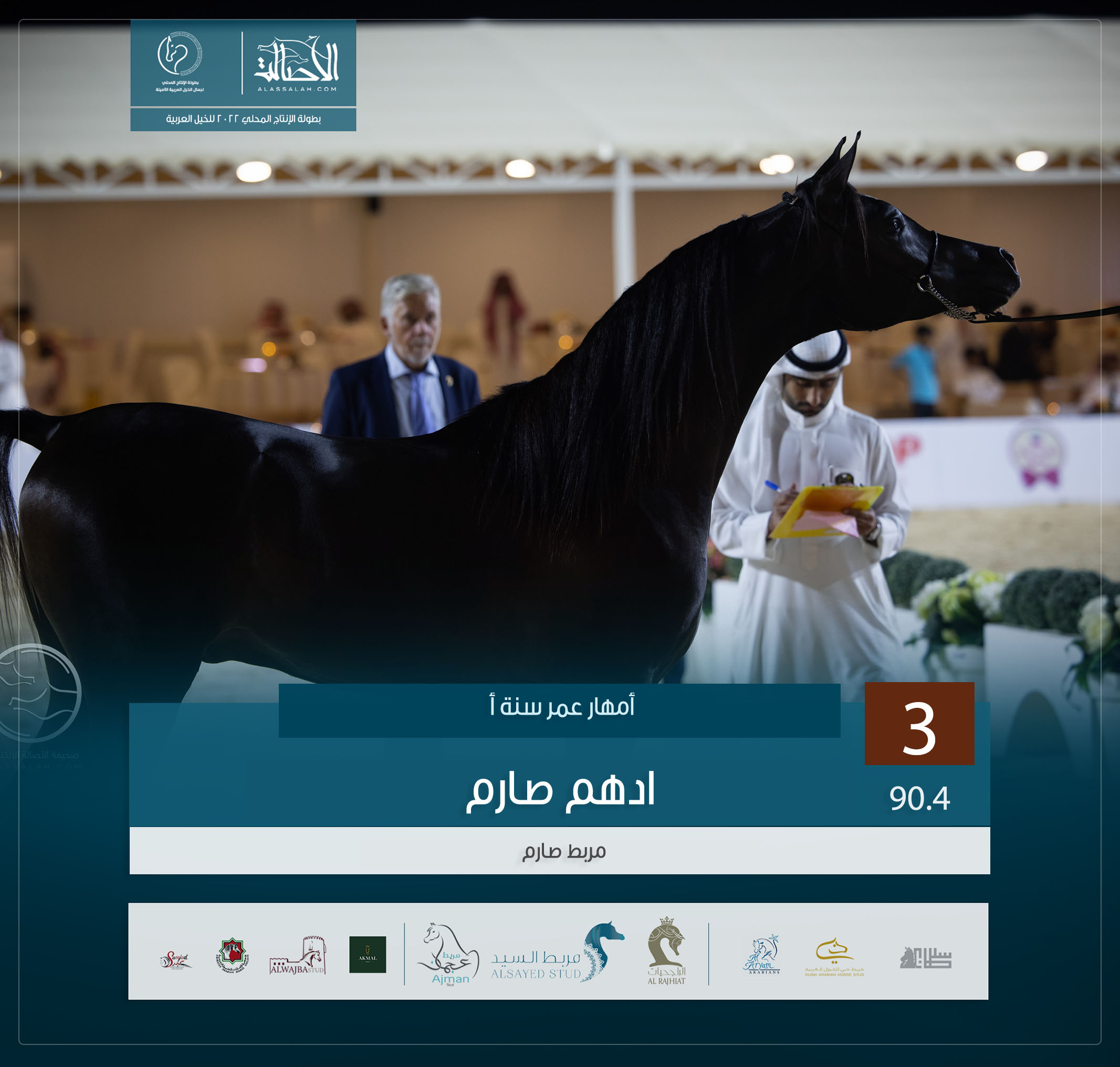 المركز الثالث: أدهم صارم (رويال أسد x باندهليزا زد بي) مربط صارم.90.40 نقطة.