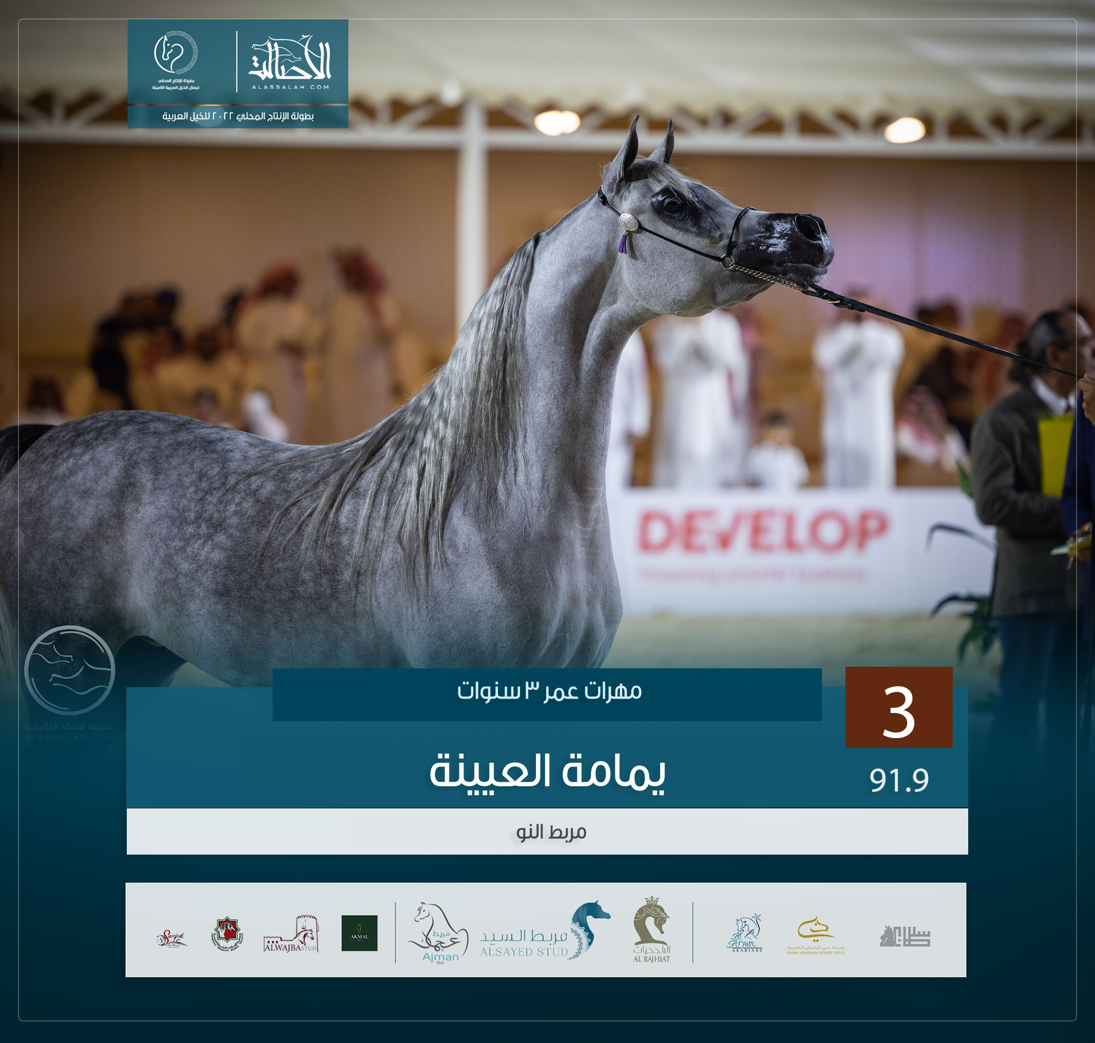 المركز الثالث: يمامة العينية (رعود البداير x ميار الرابعة) مربط النو. 91.90 نقطة.
