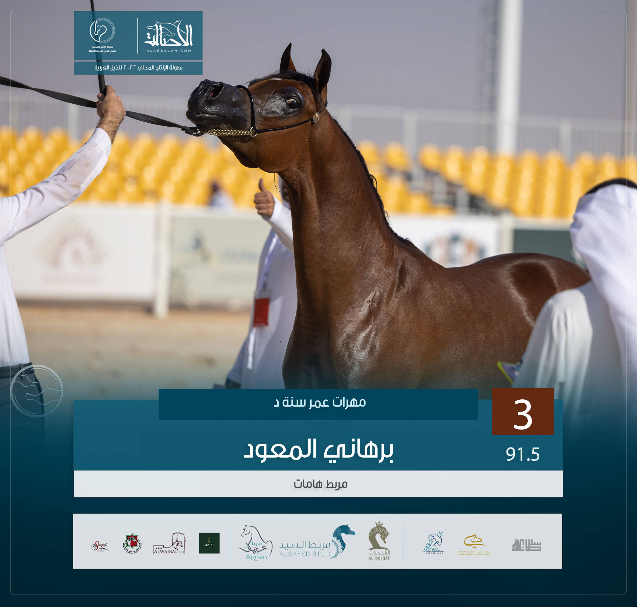 المركز الثالث:بورهاني المعود ( رعود البداير x بورهاني شريفة) مربط هامات. 91.50 نقطة.