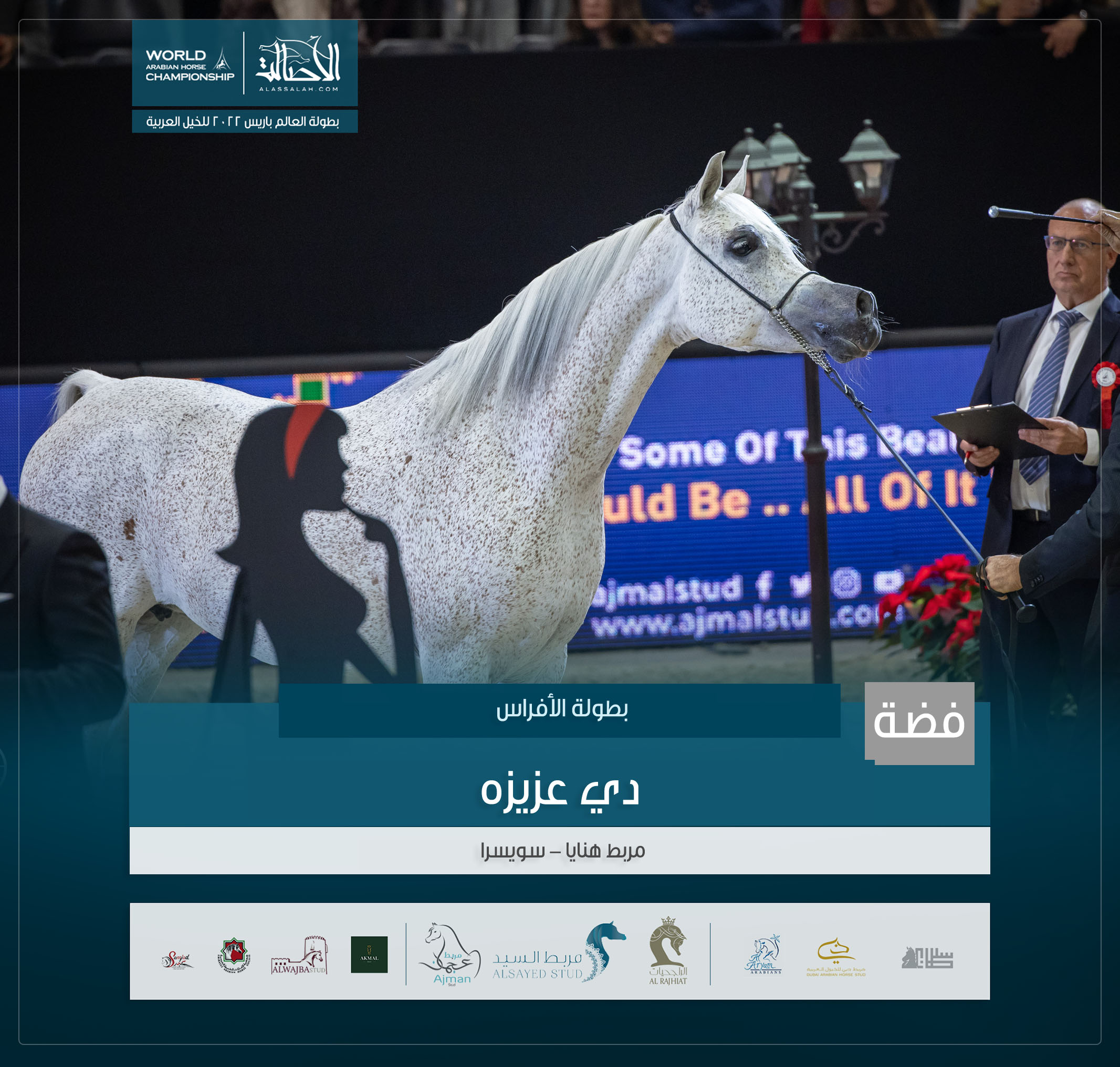 الفضة: دي عزيزة ( عجمان منسيون x ميدنايت كيس جيه) مربط هنايا – سويسرا