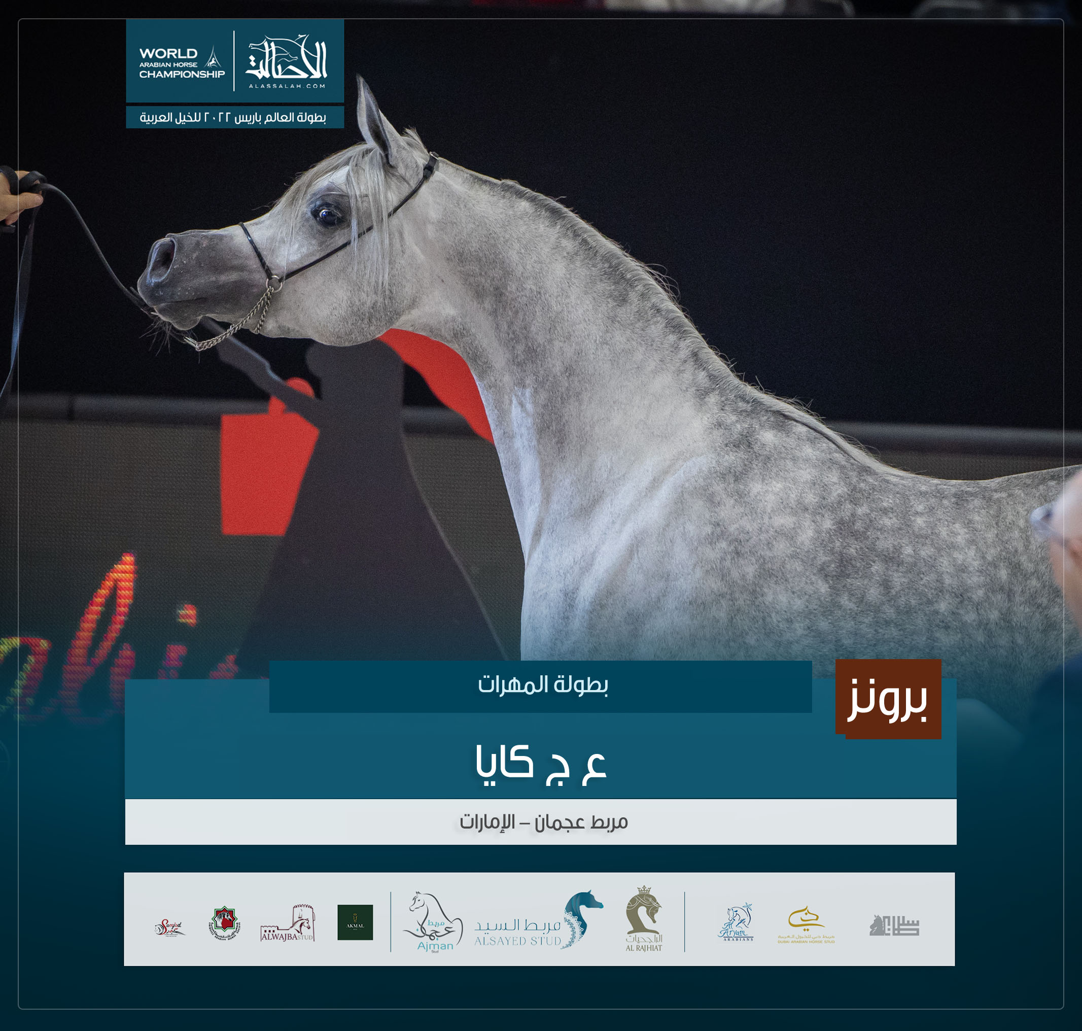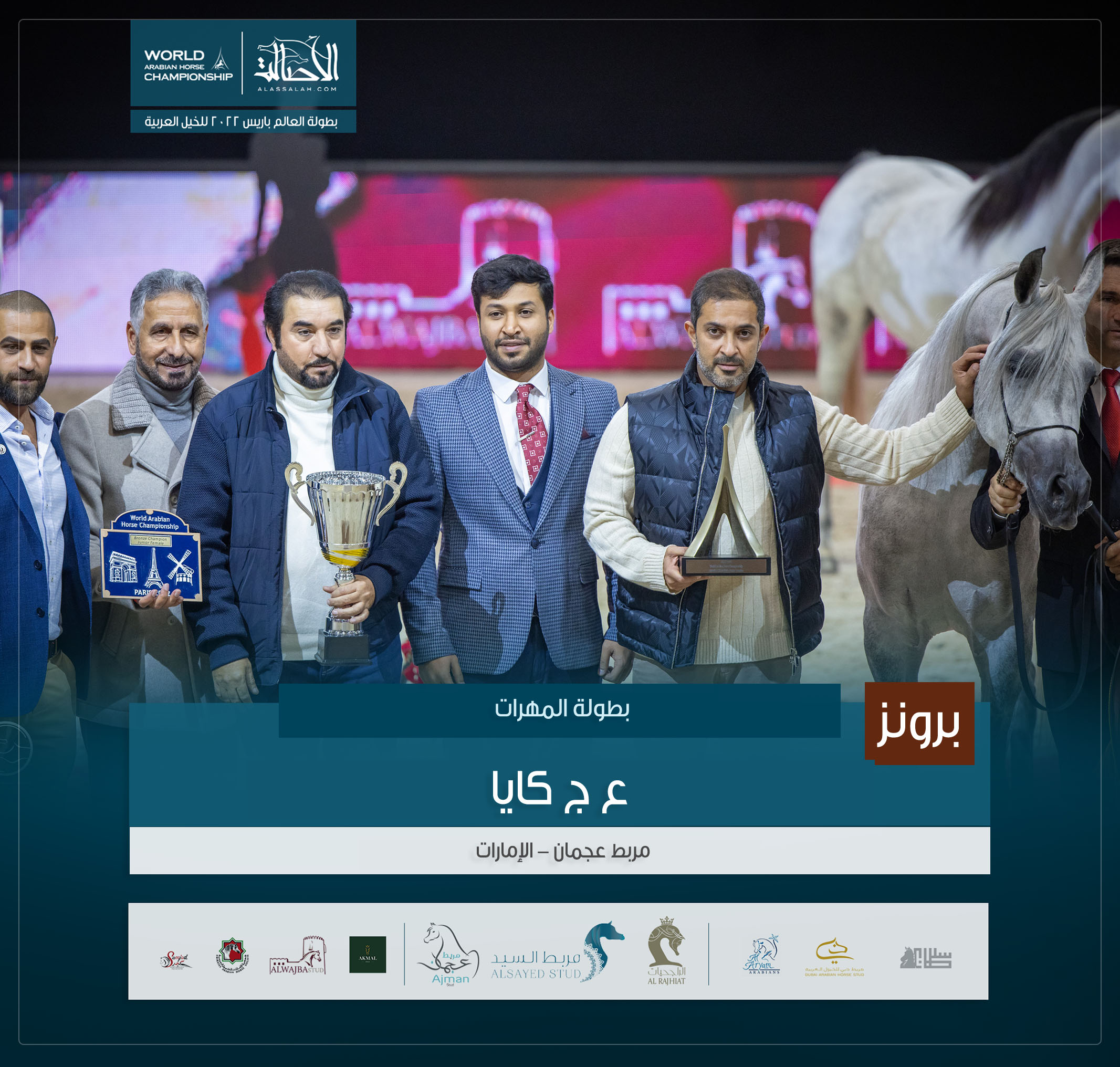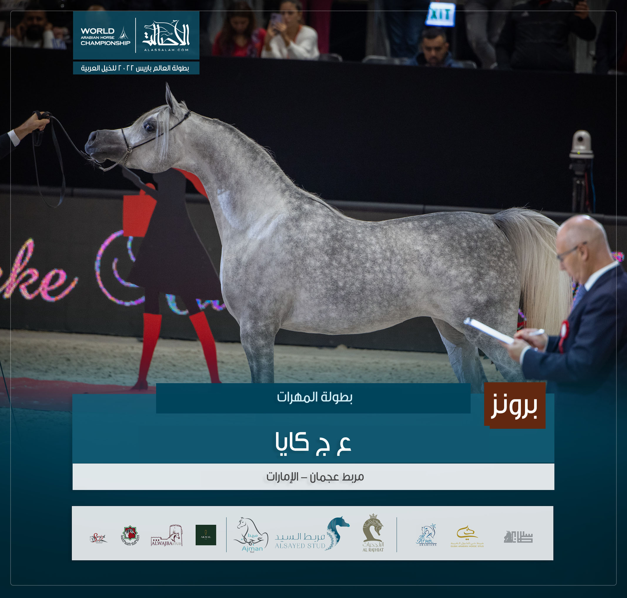 البرونز: ع ج كيه (ع ج كفو x اجا كابريس) مربط عجمان– الإمارات