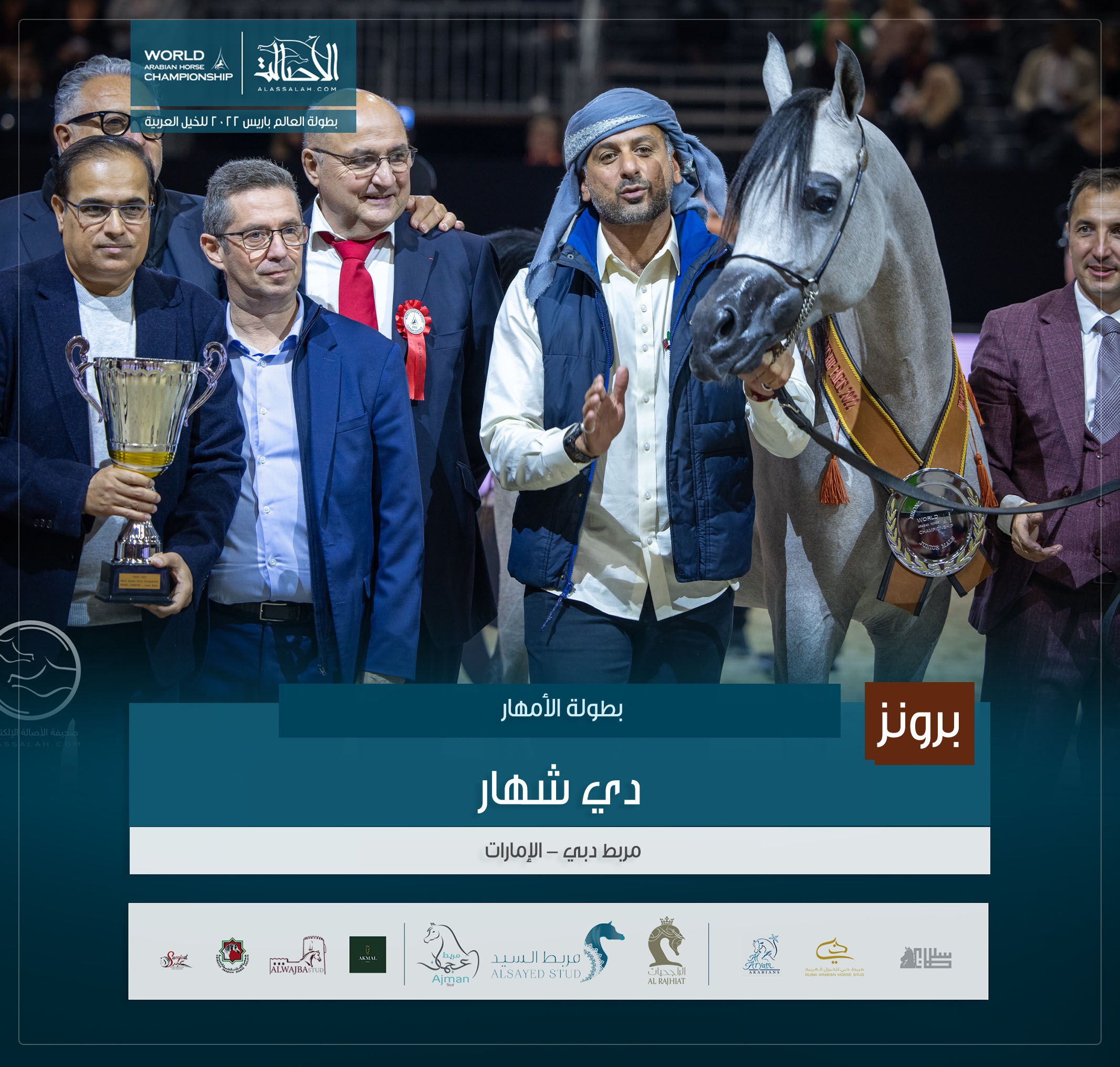 البرونز: دي شهار (اكسكاليبور اي ايه X دي شيهانة) مربط دبي – الإمارات.
