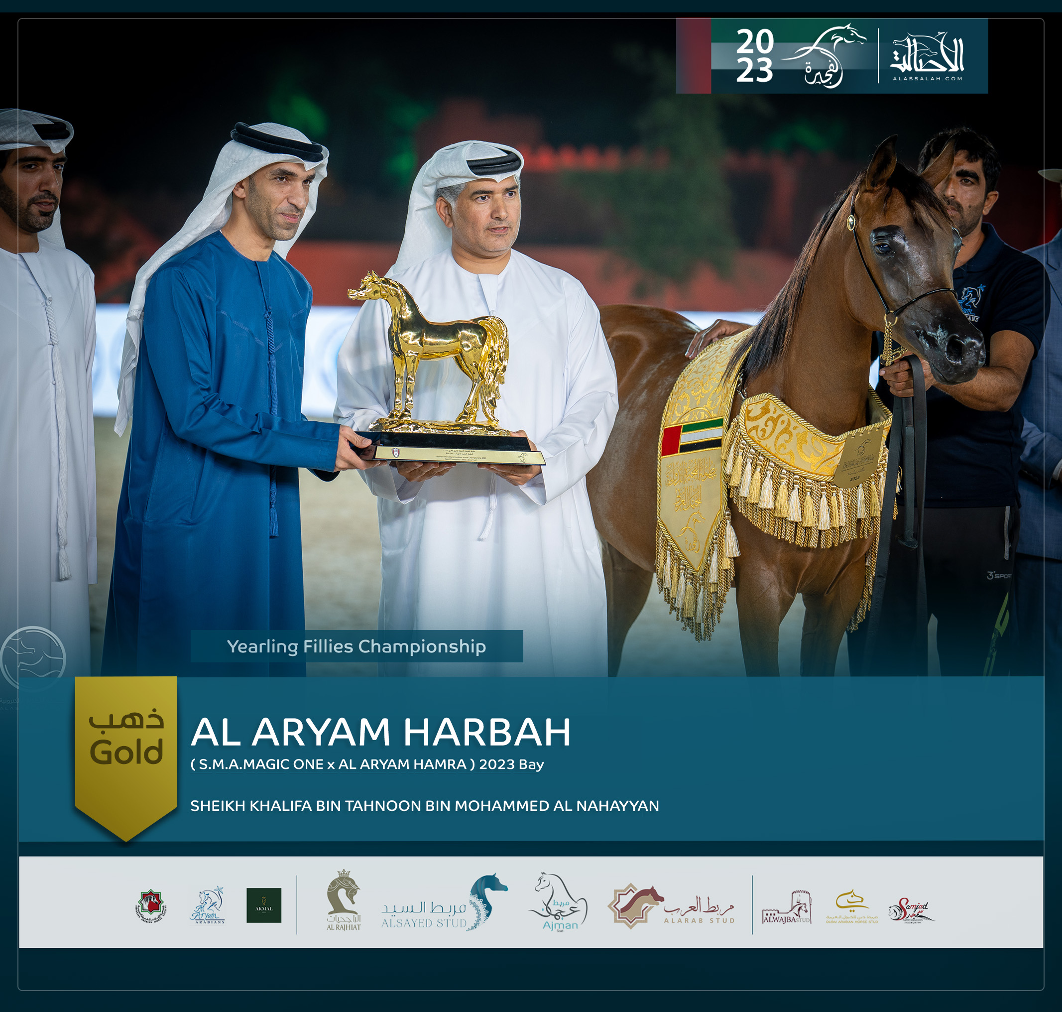 الذهب:الأريام حربة (اس ام ايه ماجيك وان x الأريام حمراء) الشيخ خليفة بن طحنون آل نهيان.