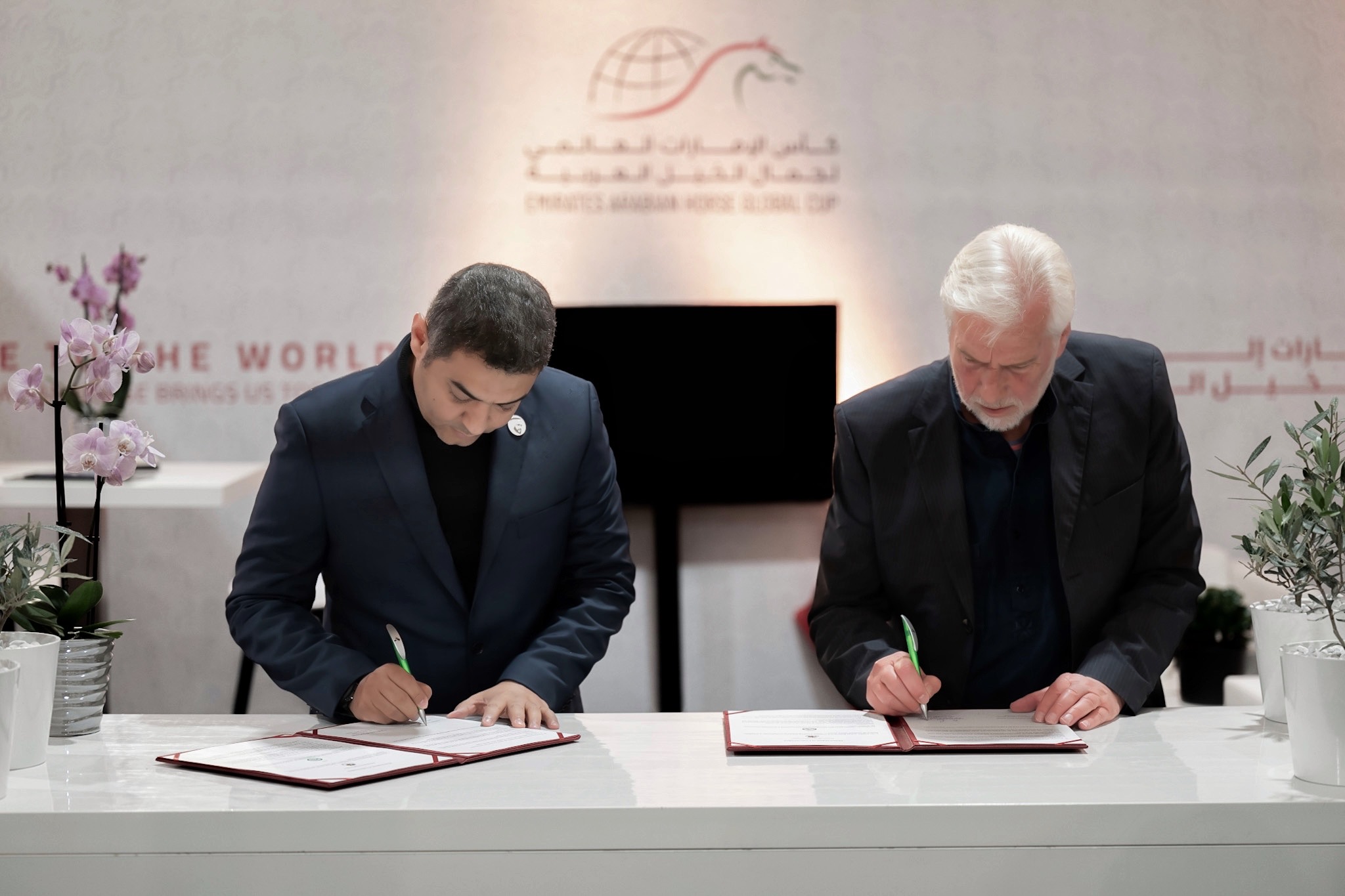 جرى توقيع المذكرة أمس في مدينة آخن المانية على هامش بطولة كأس كل الأمم التي تنظمها الجمعية الألمانية، بحضور سعادة محمد أحمد الحربي المدير العام لجمعية الإمارات للخيول العربية، ومانفريد جيدزيني رئيس الجمعية الألمانية للخيول العربية.