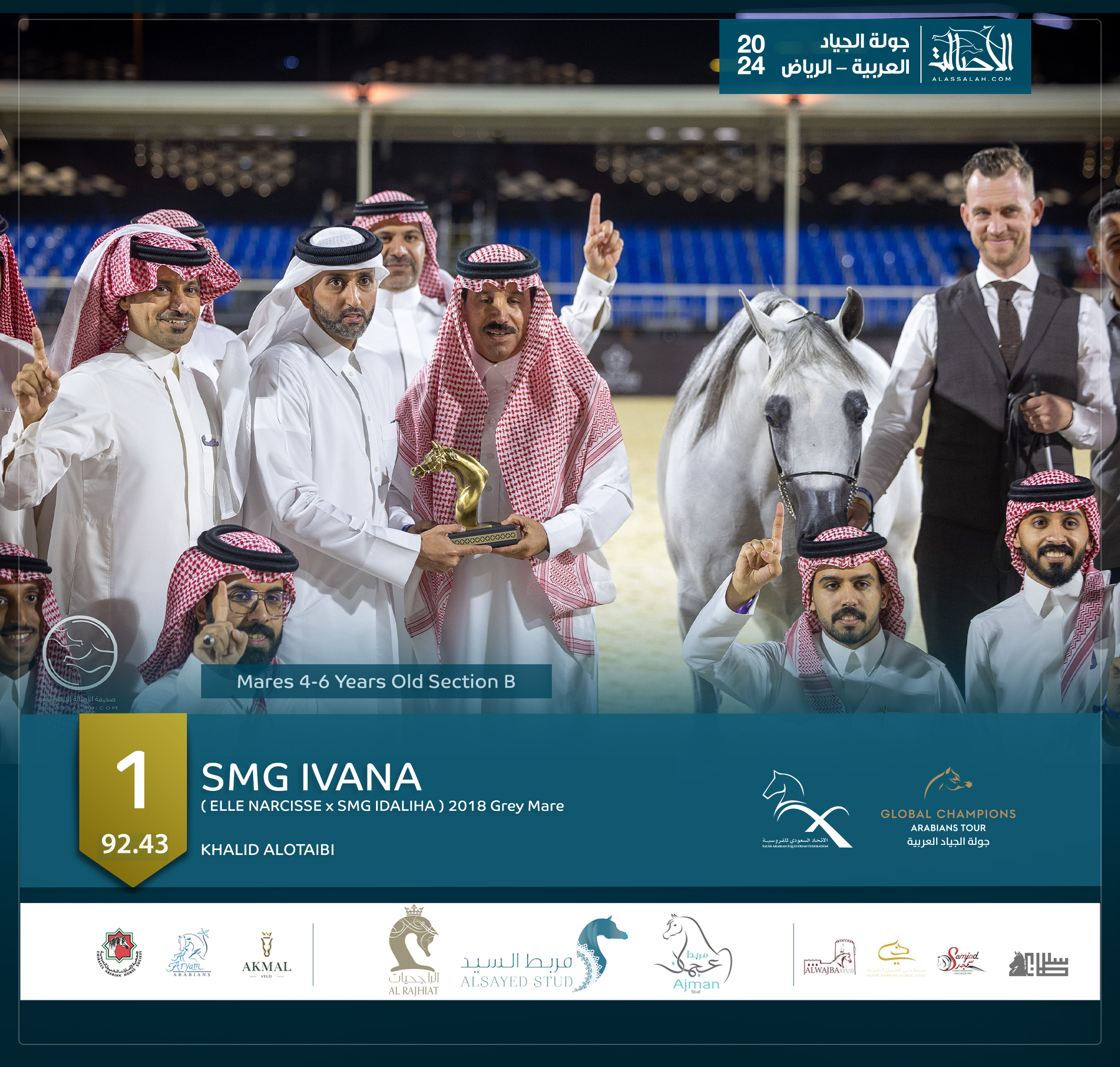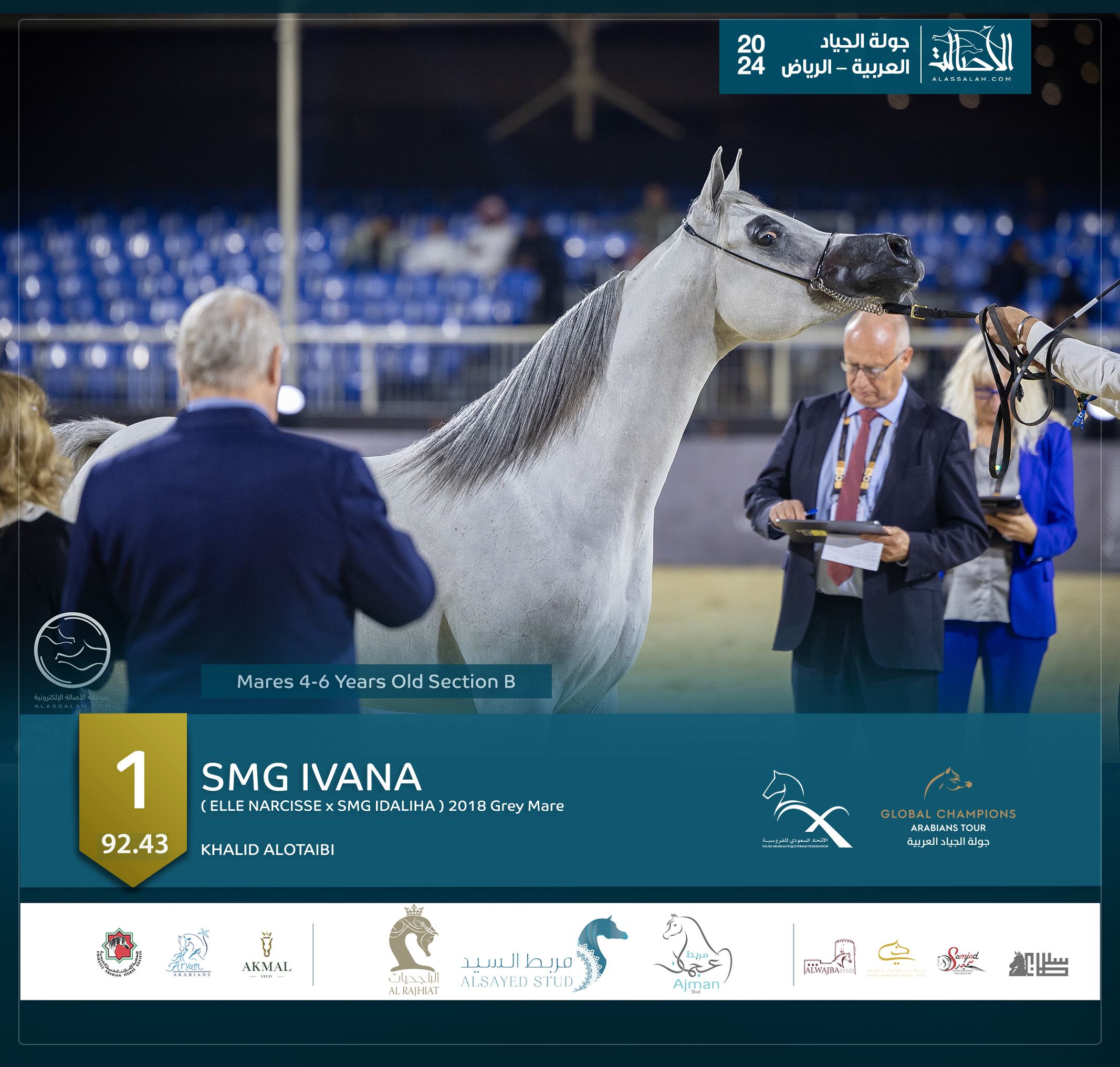 - الأول:أس ام جي ايفانا ( ايلي نارسيس x اس ام جي ايداليا) 92.43، خالد العتيبي- السعودية.