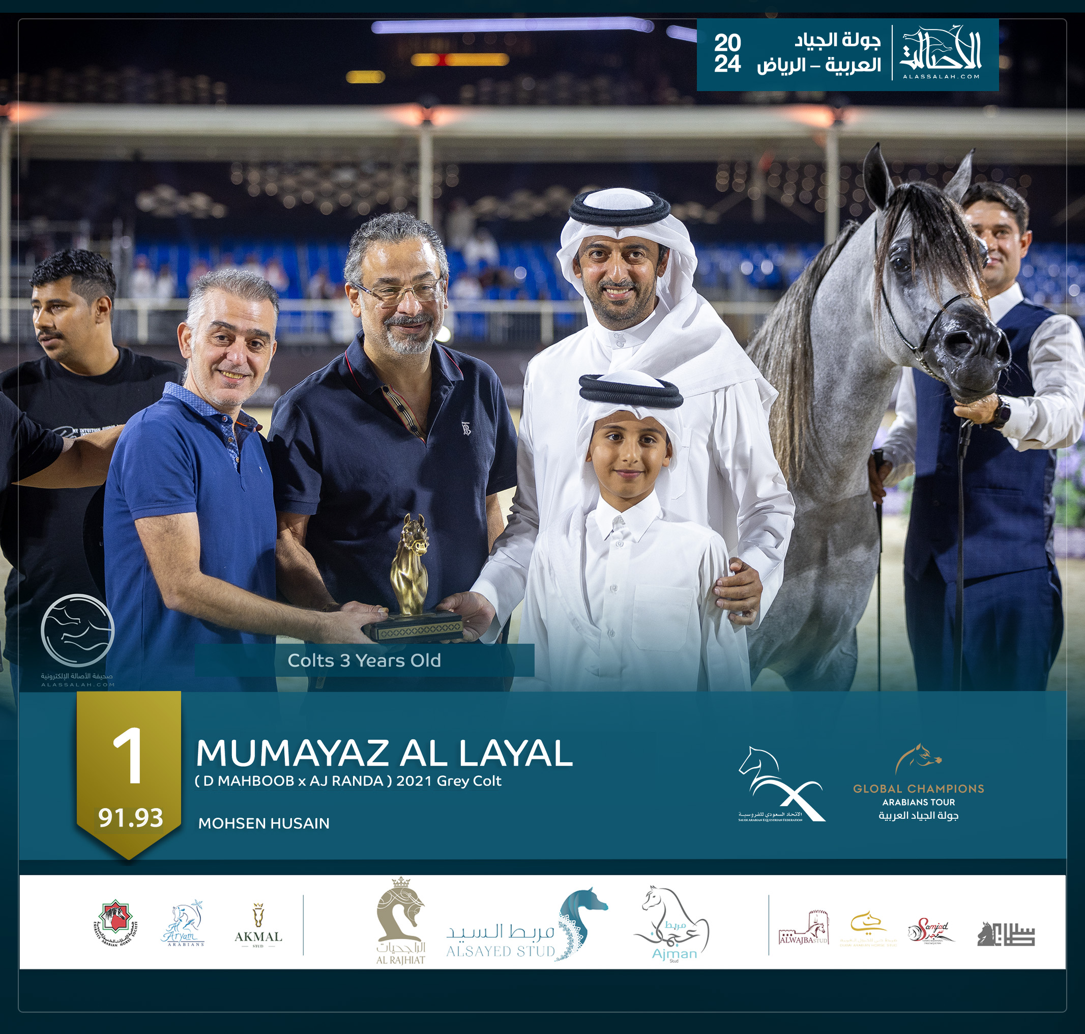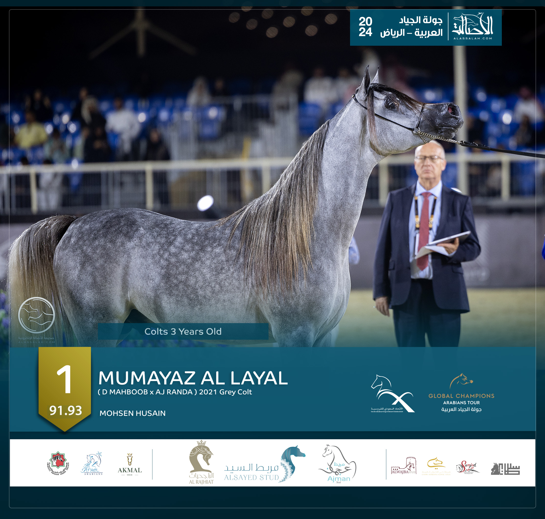 - الأول:مميز الليال (دي محبوب X ع ج رندا) 91.93، مربط الليال-البحرين.