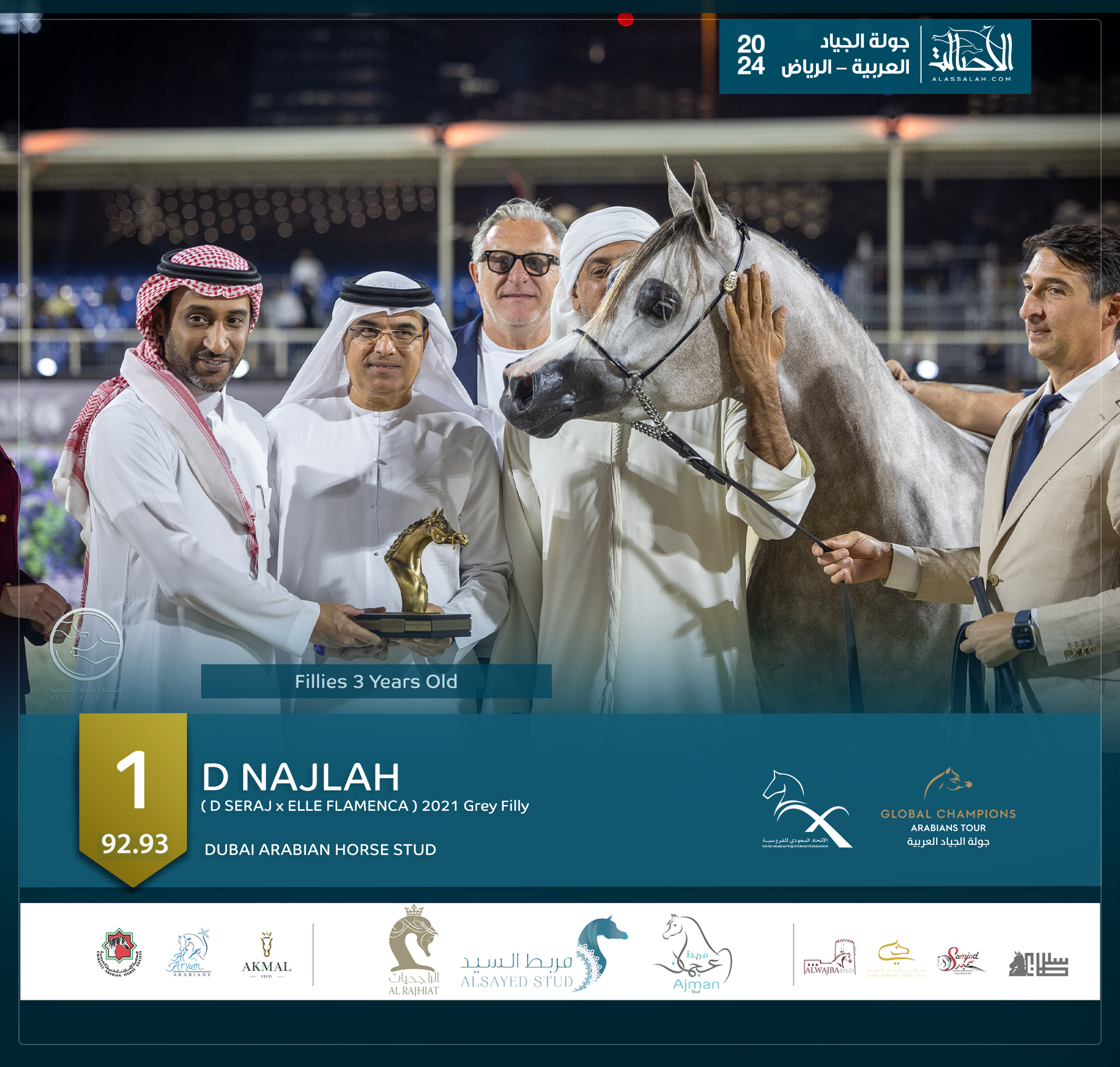 - الأول: دي نجلاء (دي سراج X ايلي فلامينكا) 92.93، مربط دبي- الإمارات.