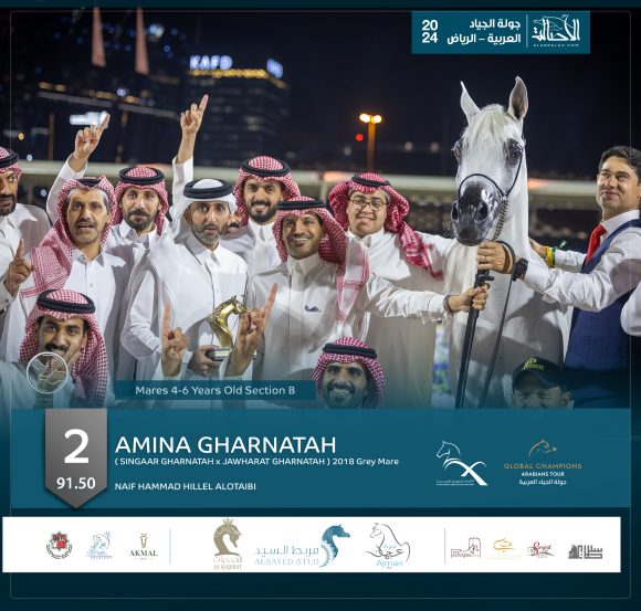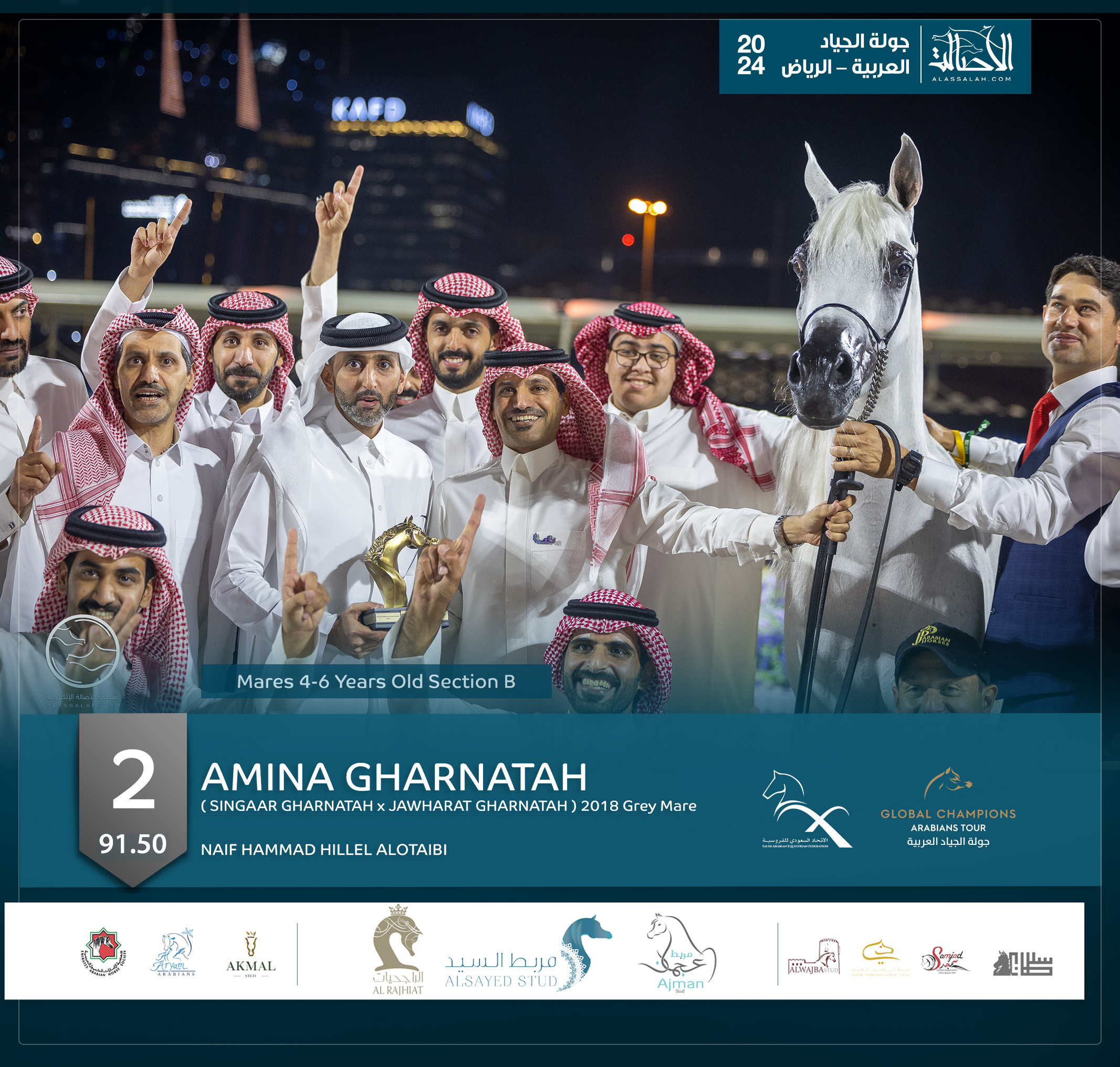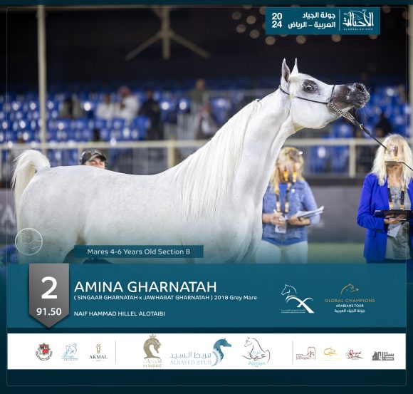 - الثاني:امينة جرانتا (سينجار جرانتا x جوهرة جرانتا) 91.50، نايف العتيبي- السعودية.
