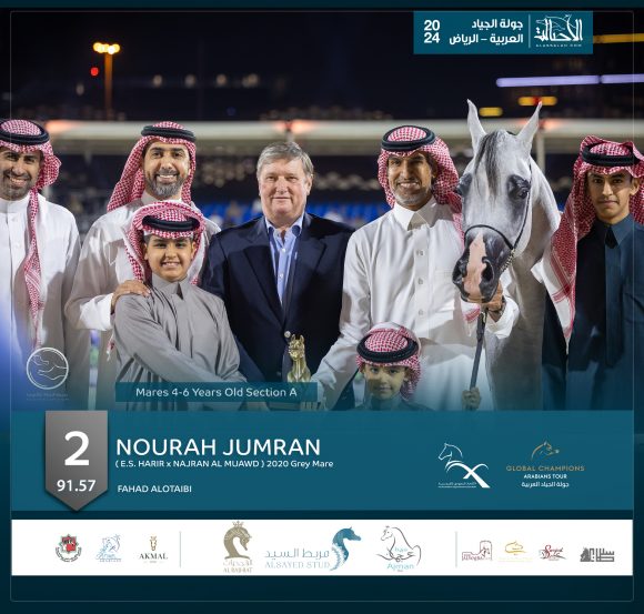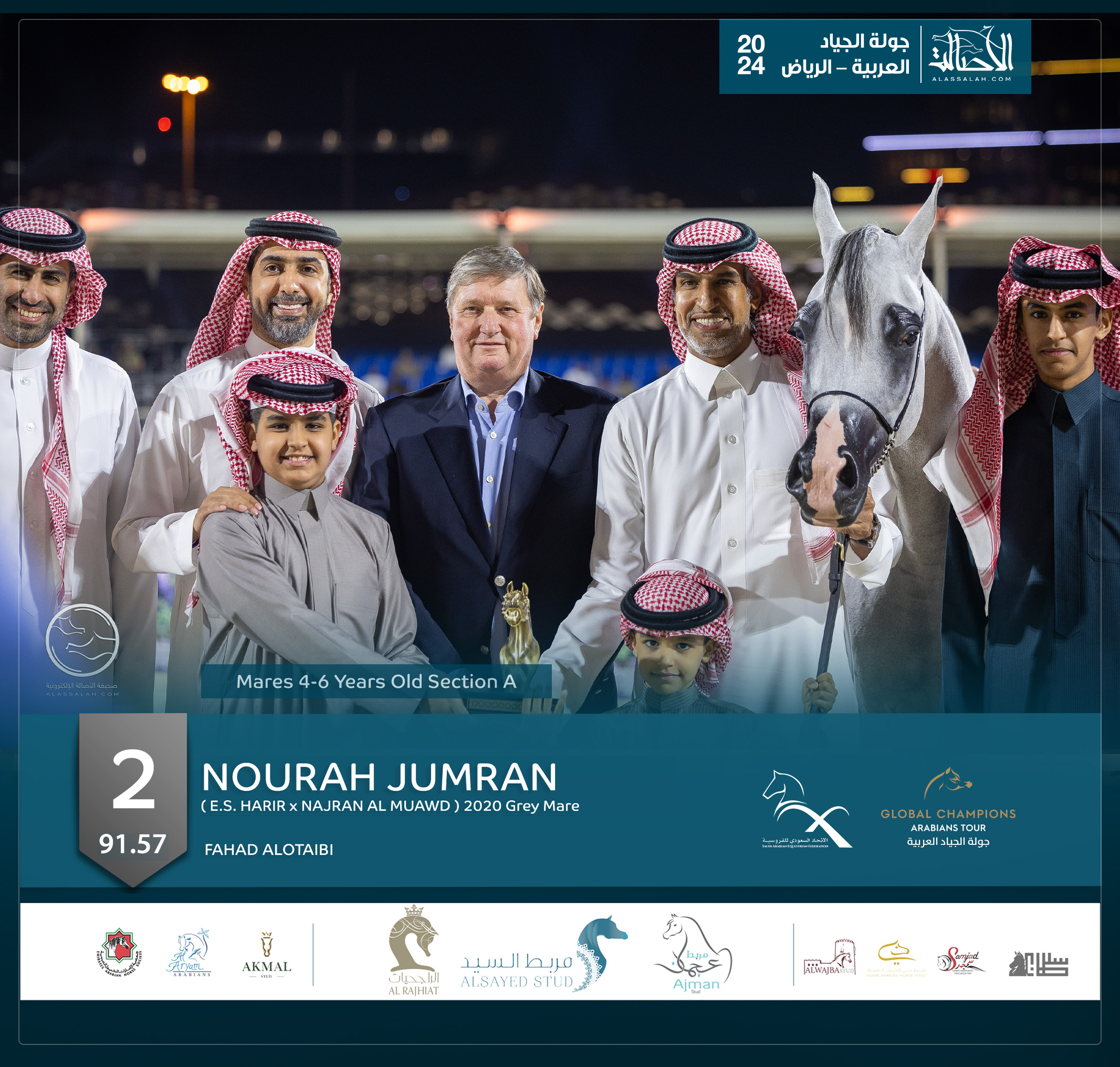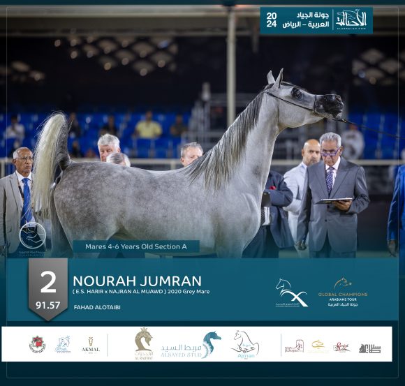 - الثاني:نورا جمران (اي اس حرير X نجران المعود) 91.57، مربط جمران- السعودية.