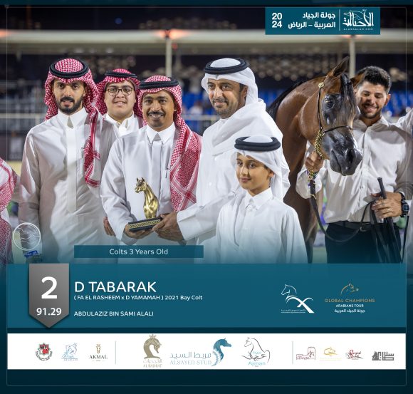 - الثاني: دي تبارك (اف ايه الرشيم X دي يمامة) 91.29، مربط جنات- السعودية.