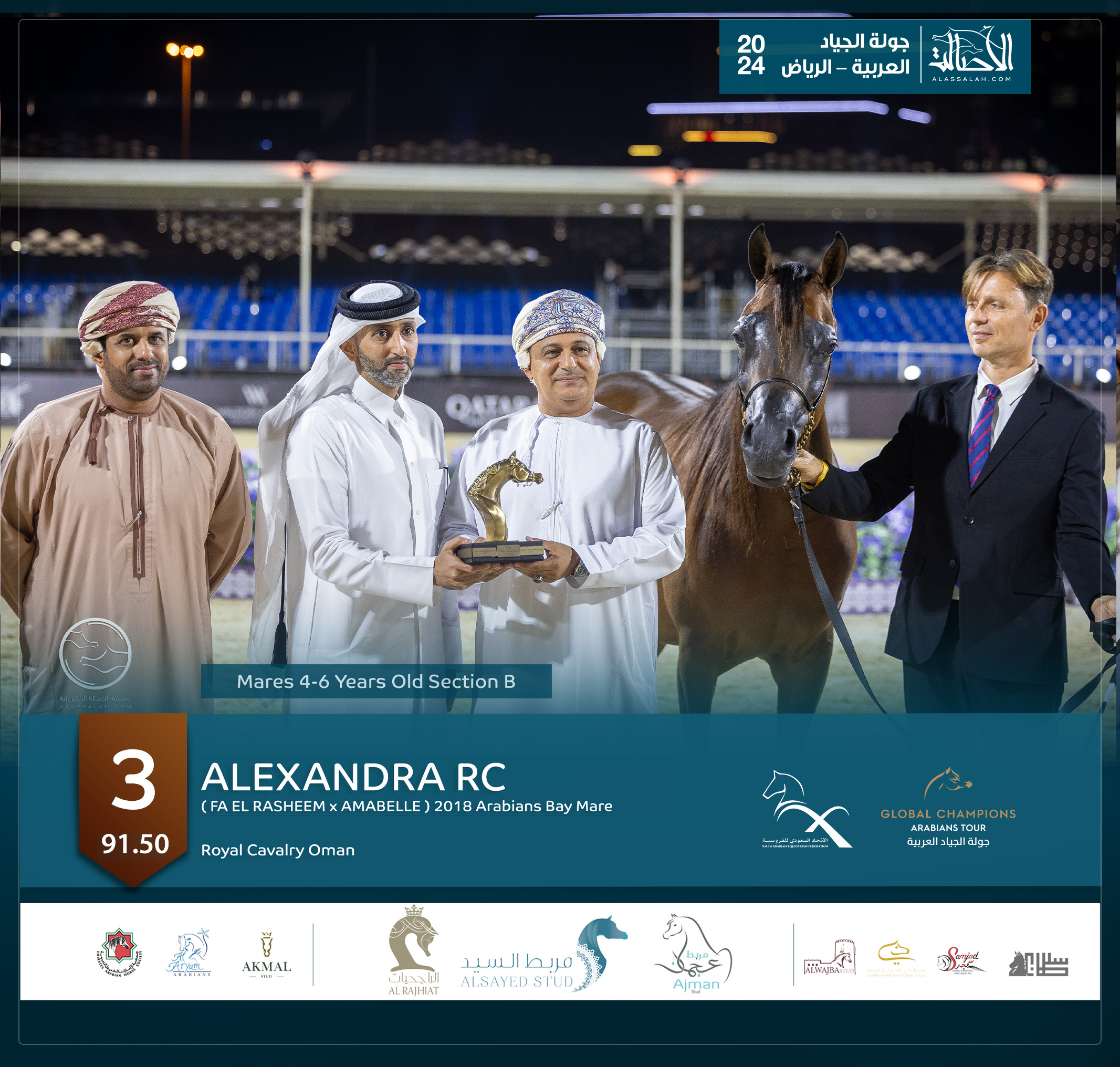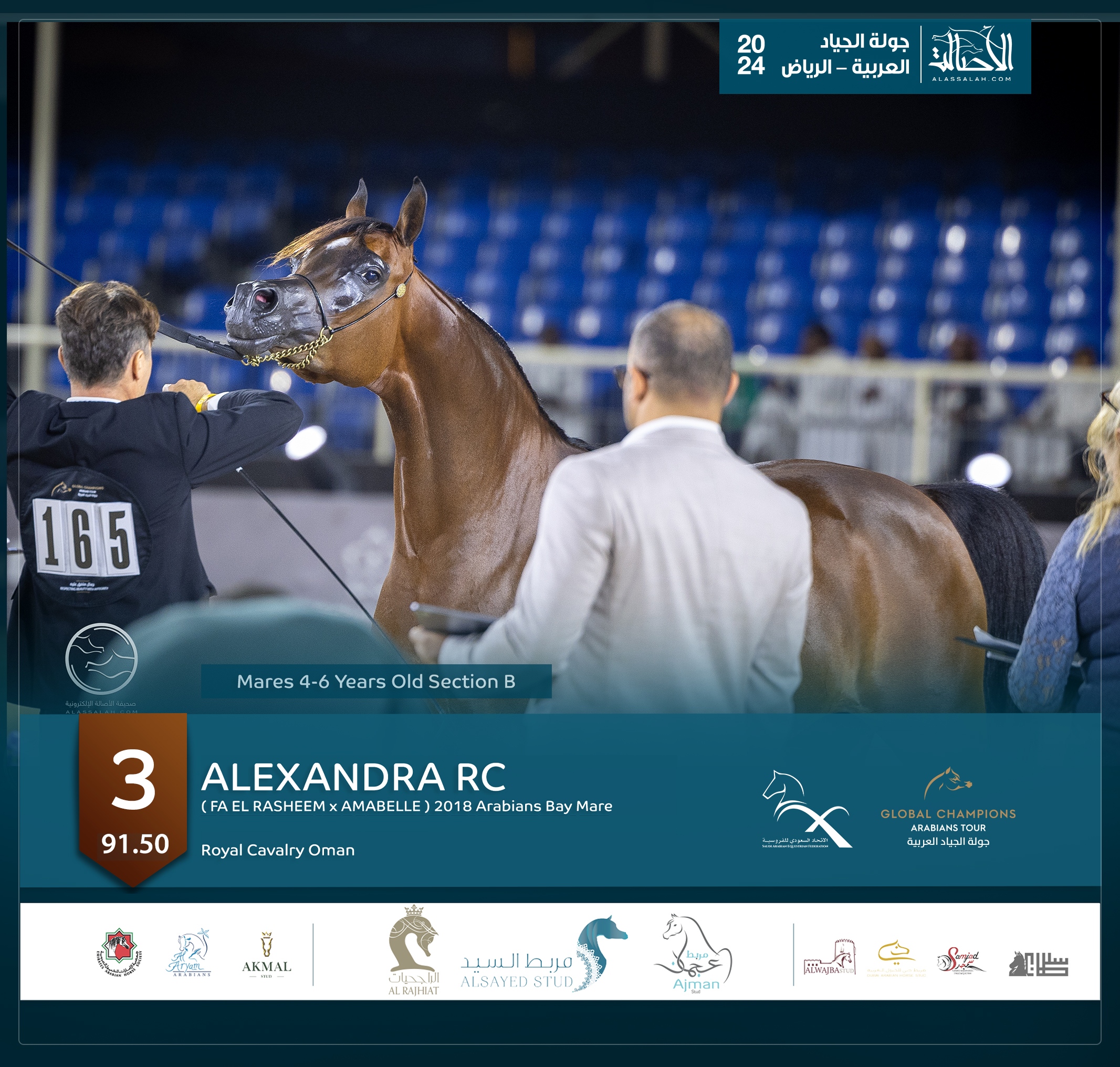 - الثالث:اليكاسندرا ار سي ) اف ايه الرشيم x امابيلي) 91.50، الخيالة السلطانية العمانية- سلطنة عمان.