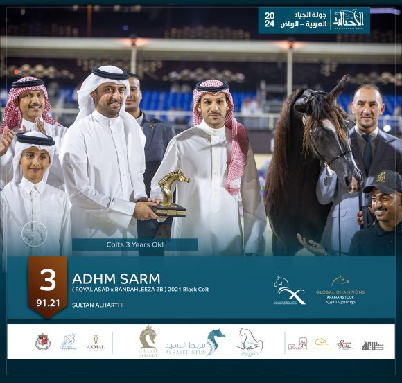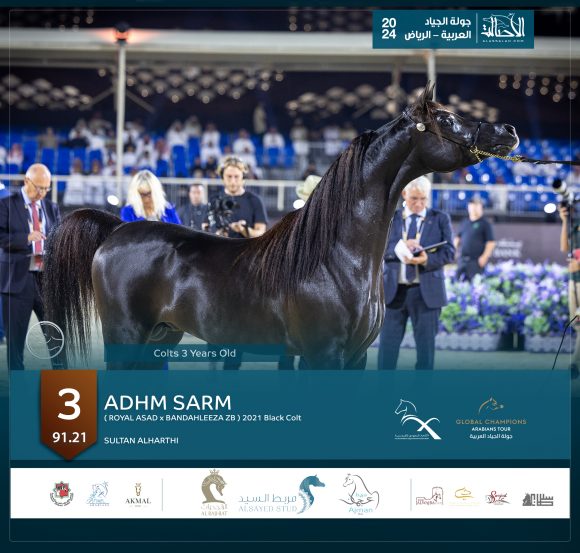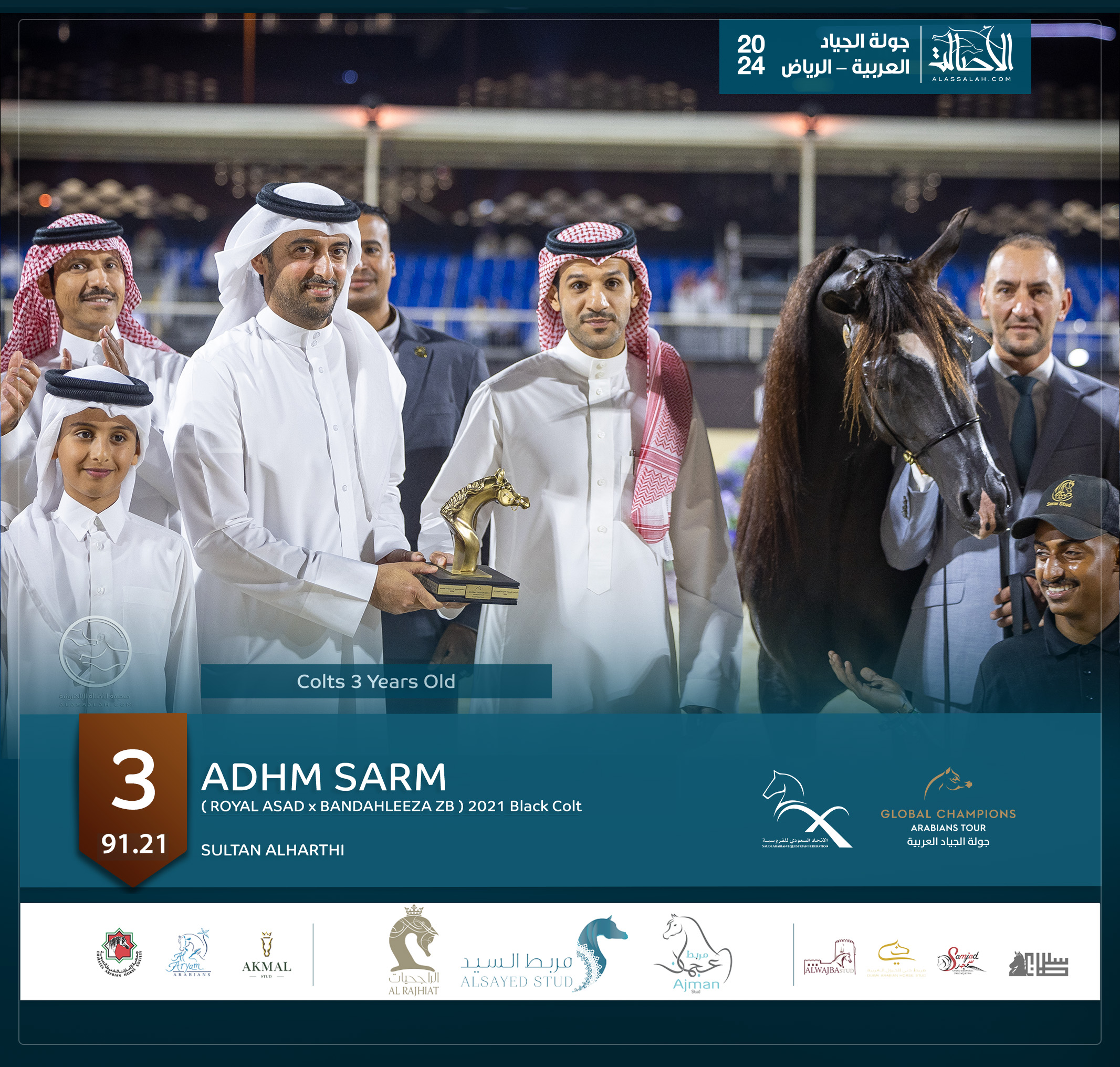 - الثالث: ادهم صارم (رويال أسدX باندليزا زد بي) 91.21، مربط صارم- السعودية.