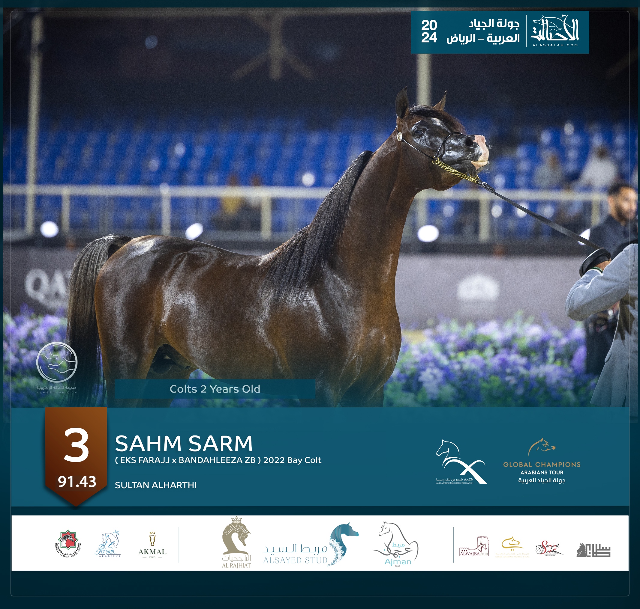 - الثالث: سهم صارم (اي كيه اس فراج X باندهاليزا زد بي) 91.43، مربط صارم- السعودية.