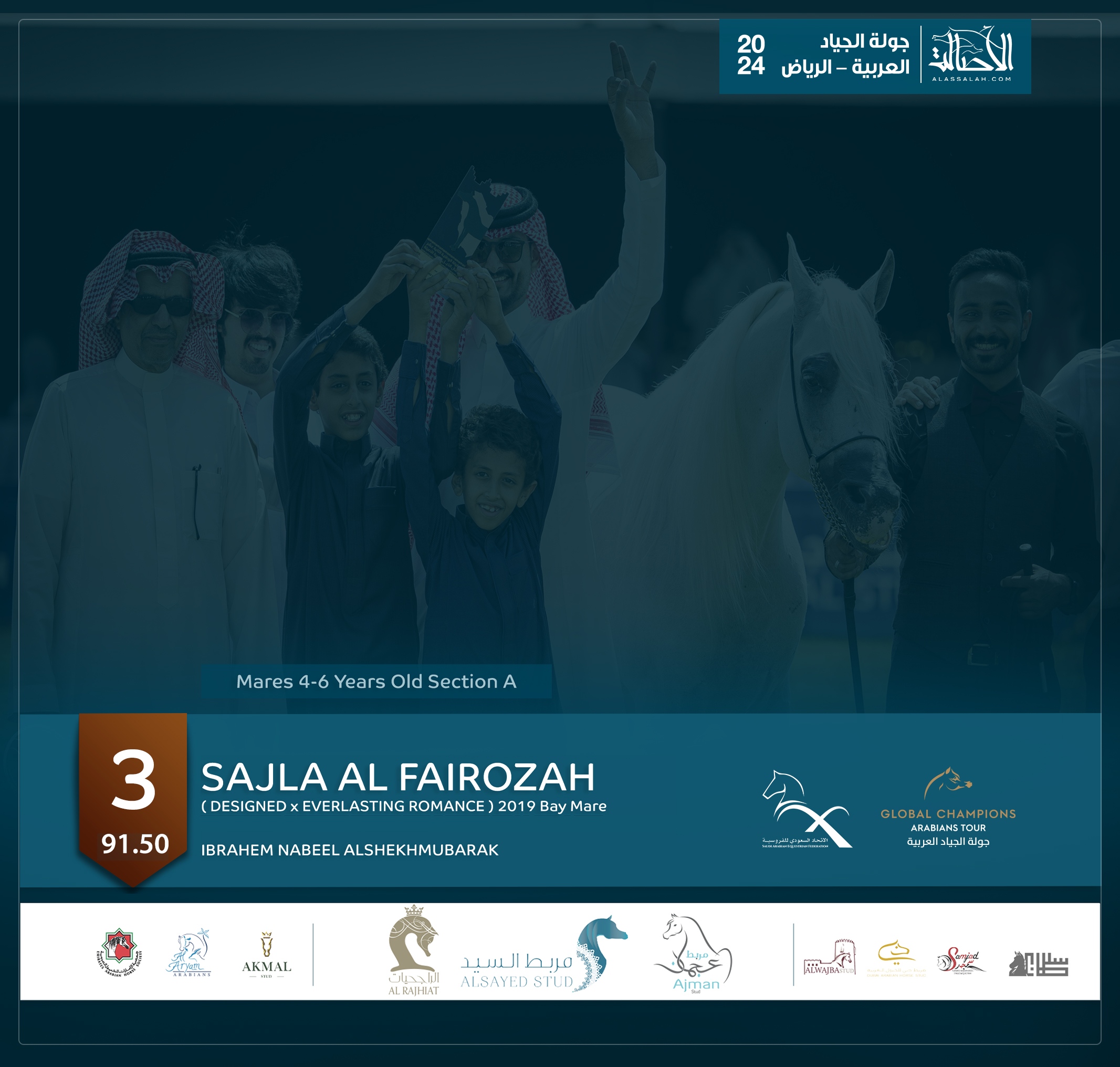 - الثالث: سجلا فيروزة (ديزايند X ايفر لاستينج رومانس)91.50، مربط اي بي – السعودية.
