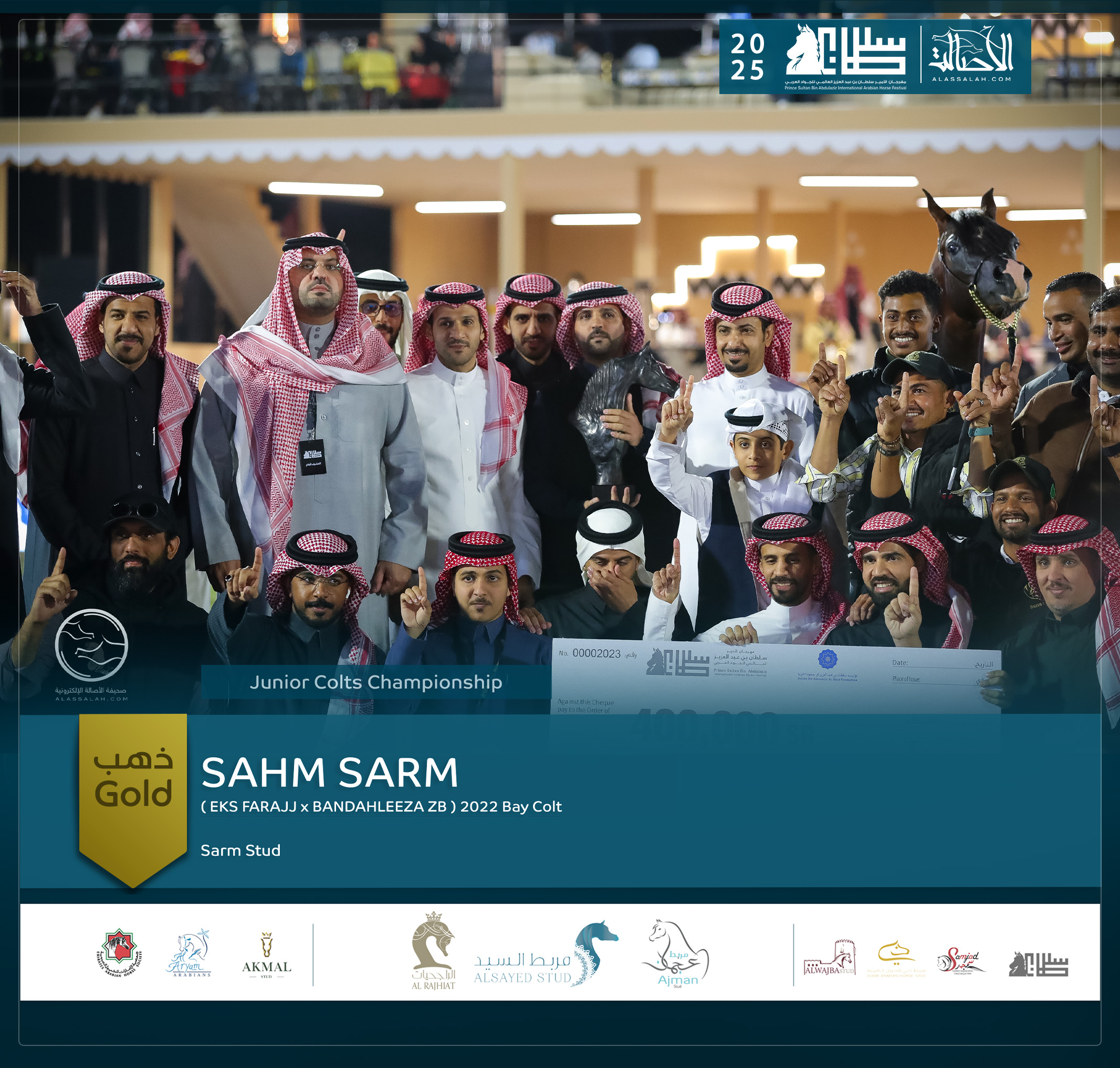 - الذهب: سهم صارم (اي كيه اس فراج X باندهليزا زد بي) مربط صارم – السعودية.