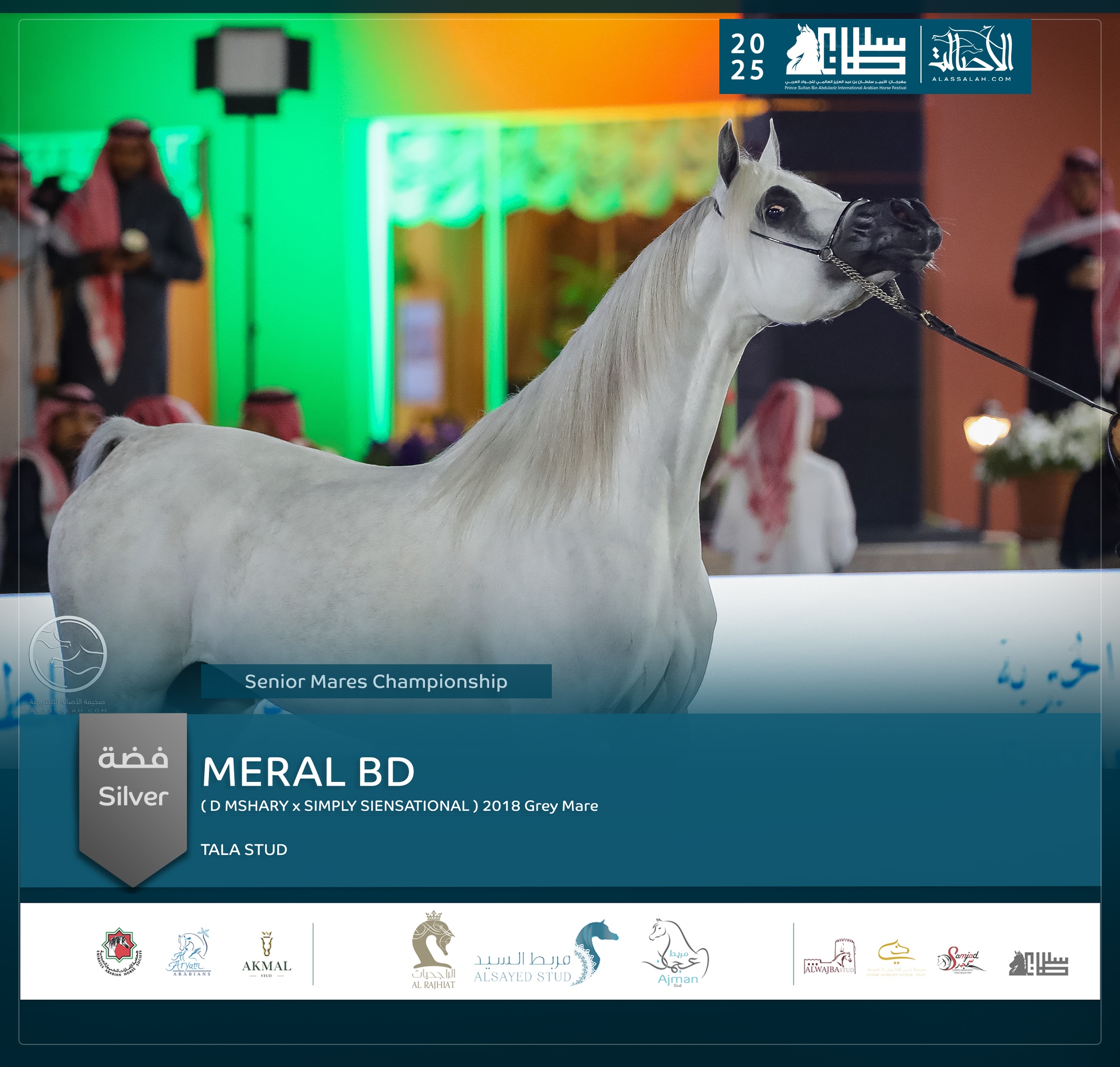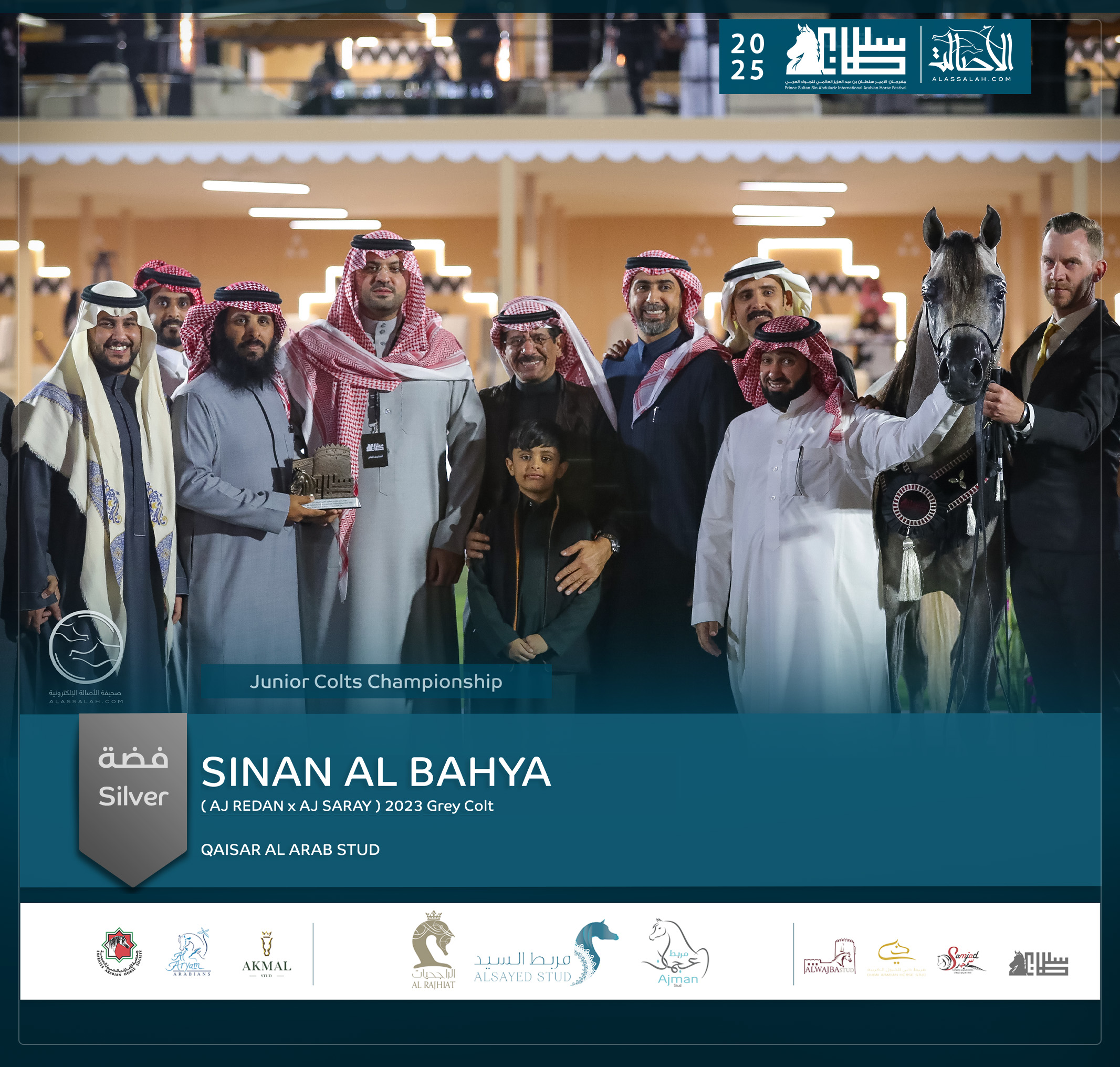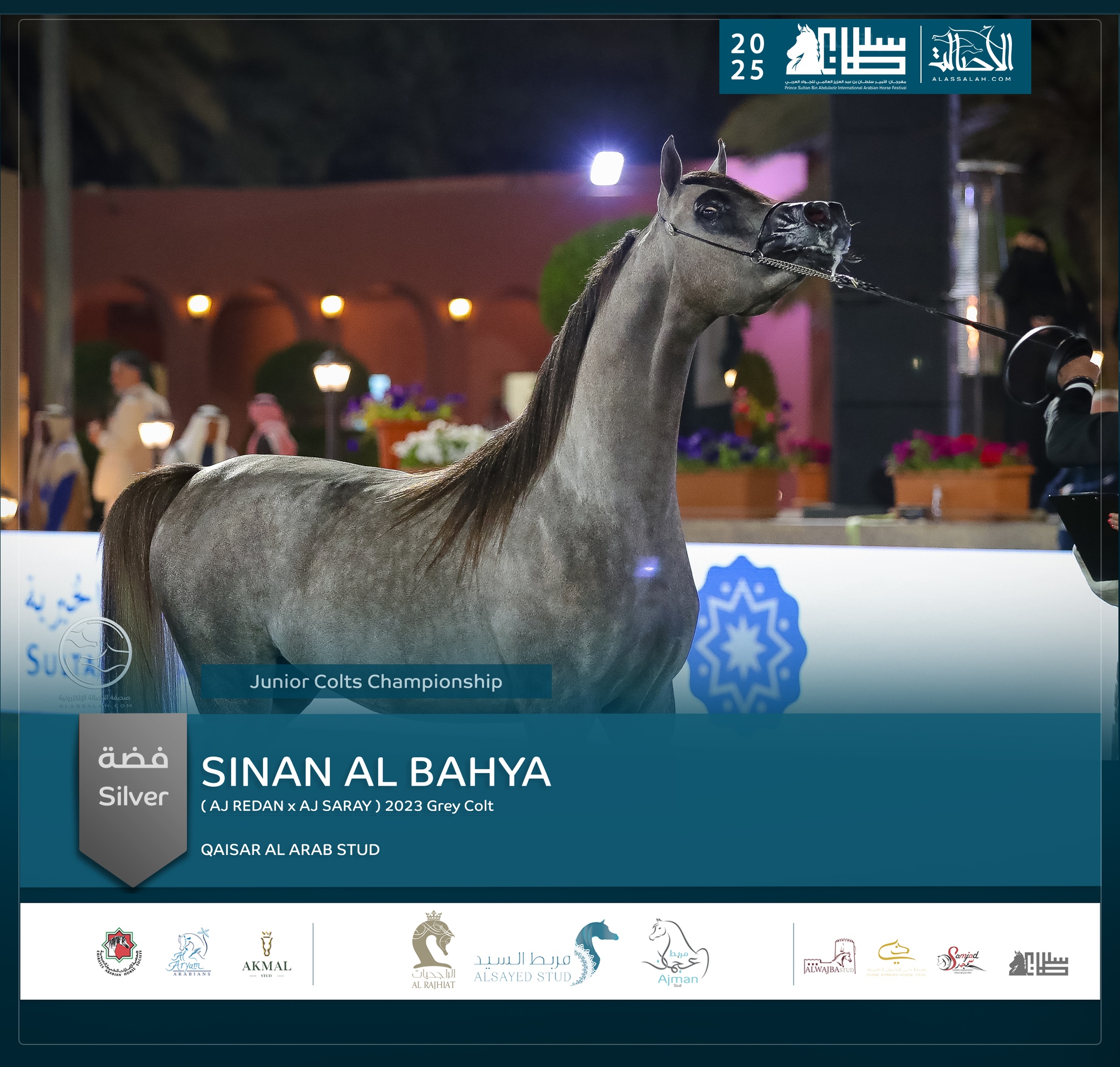 - الفضة: سنان الباهية (ع ج ريدان X ع ج ساريا) مربط قيصر العرب- السعودية.