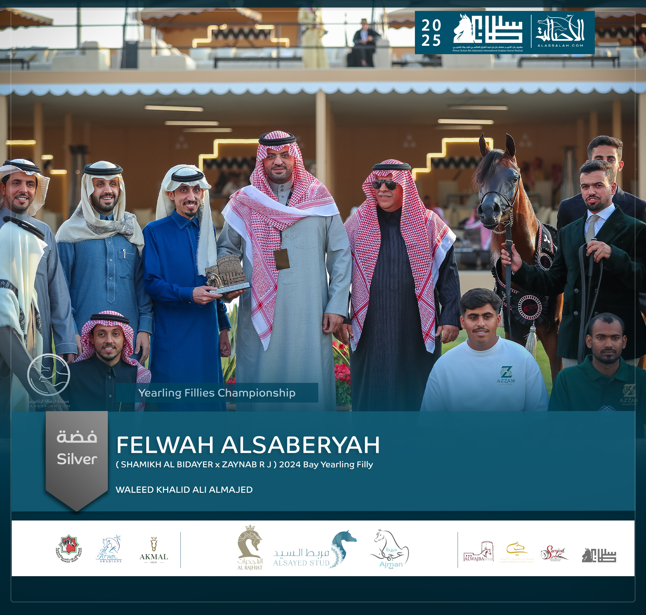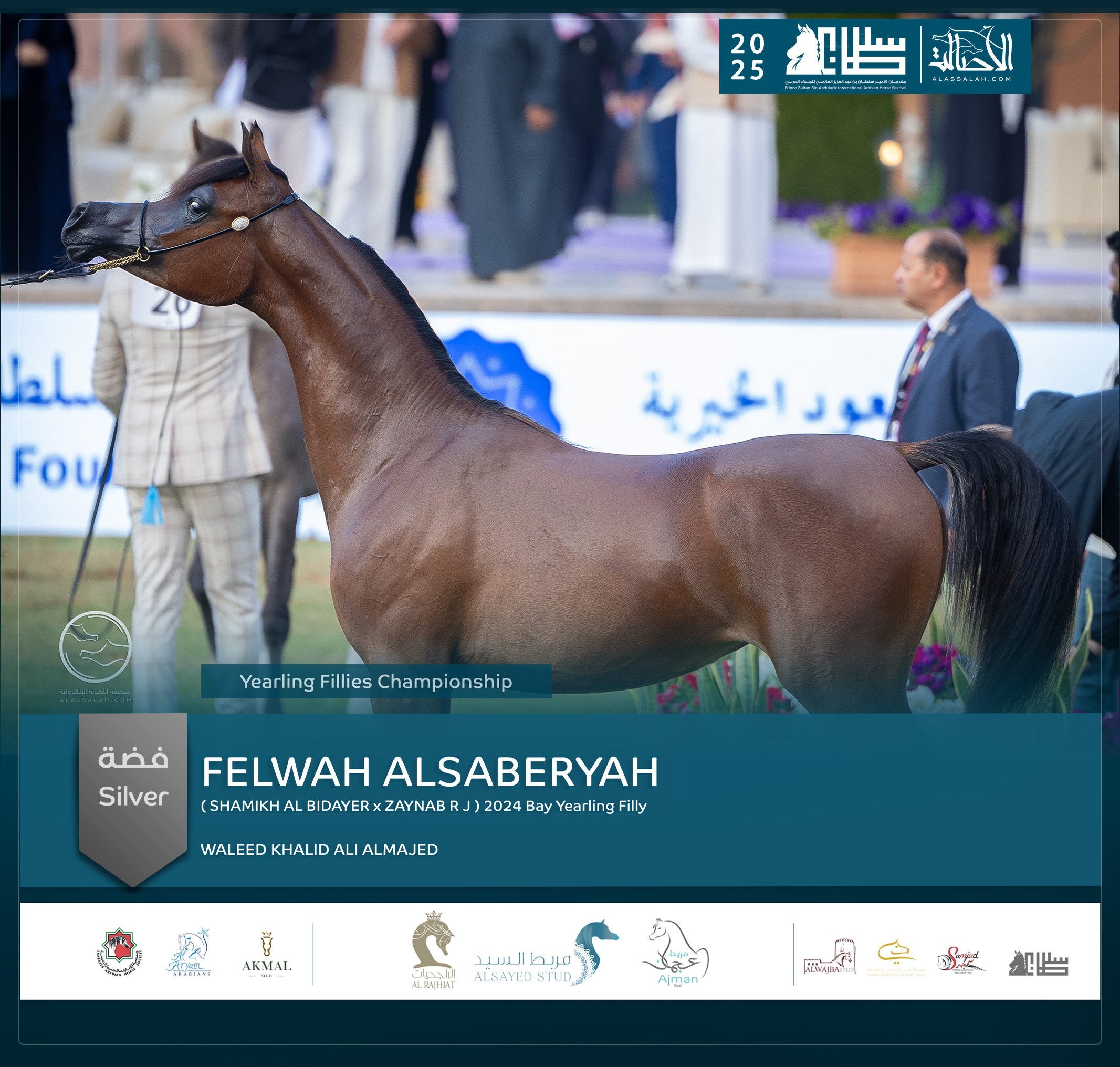 - الفضة: فلوة السابرية (شامخ البداير x زينب ار جيه) وليد خالد الماجد- السعودية.