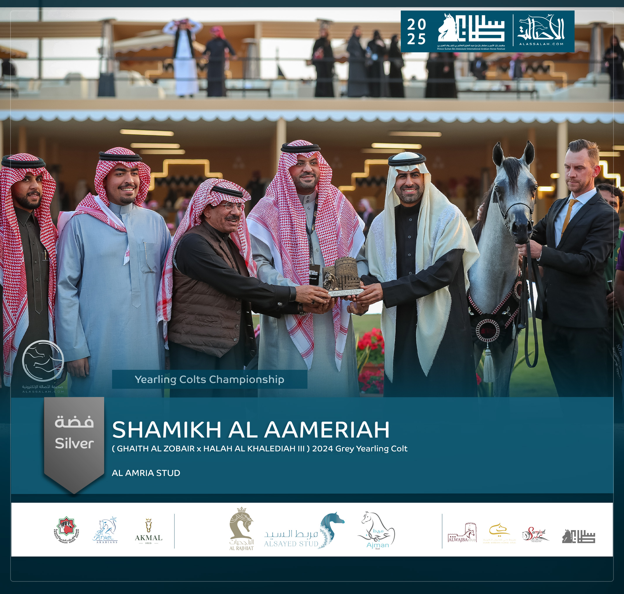 - الفضة: شامخ العامرية ( غيث الزبير X هالة الخالدية الثالثة) مربط العامرية- السعودية.