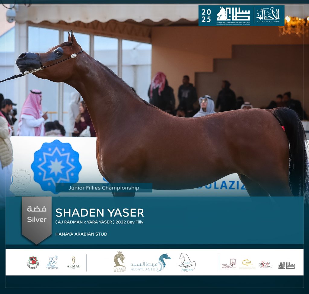 - الفضة: شادن ياسر(ع ج ردمان x يارا ياسر) مربط هنايا –سويسرا.