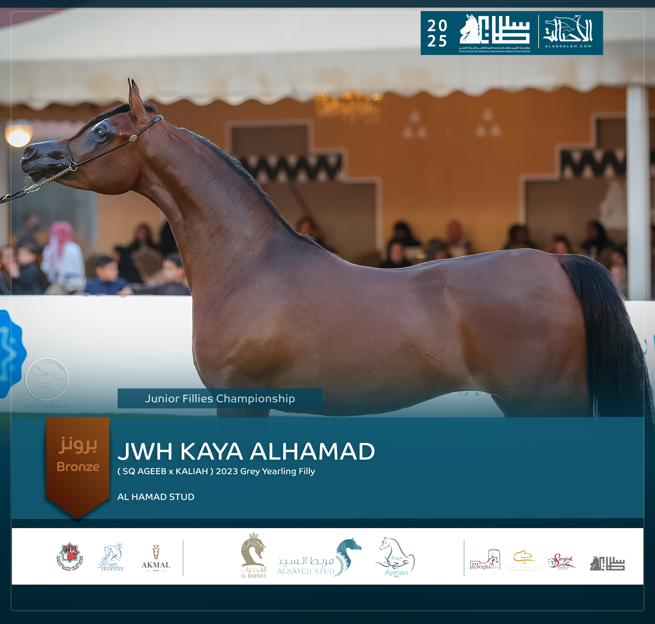 - البرونز: اف شيخة (اليكساندر x كادي العناية) مربط العراقة – السعودية.