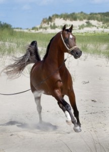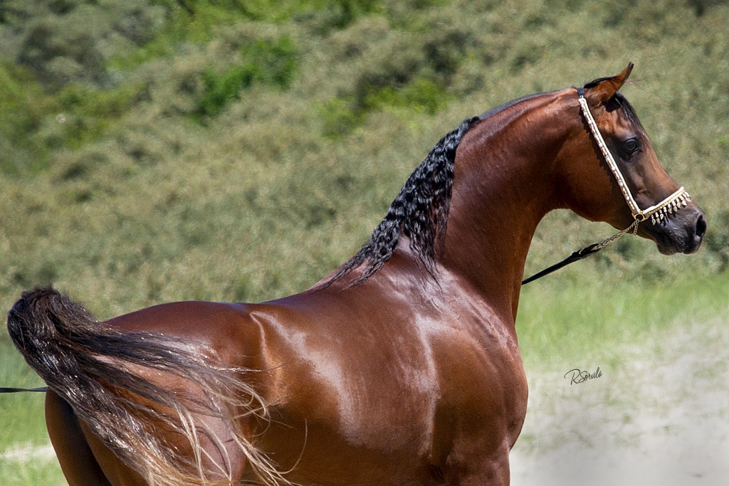 Descending from one the oldest and highly respected lines in Arabian horse breeding, the Bairactar one through his sire, KAS Von Dutch has one of the most representative stallions of this line in his ancestors; the elegant and athletic Amurath Sahib. Amurath Sahib has been a very successful race winner and sire of Stakes winners. His most famous son, Arax became the most important sire of his time and ensured the future of the Bairactar line. Typical of Arax, he stamped his descendent with large black eyes, well-set necks, great substance and depth of body and hip among an excellent leg structure; as on his son Nabeg.