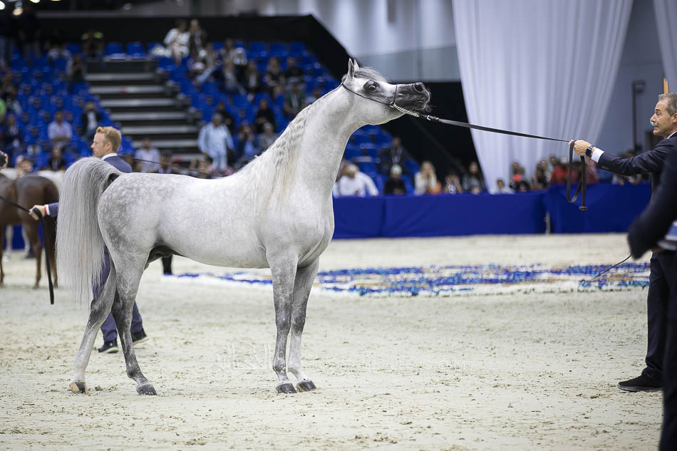 Sundown KA was able to score higher points than the 2012 World Champion QR Marc (Marwan Al Shaqab x Swete Dreams) from whom he was bred, and followed in the footsteps of E.S. Harir, who won the Senior Stallions Gold for Al Saqran Stud last year.