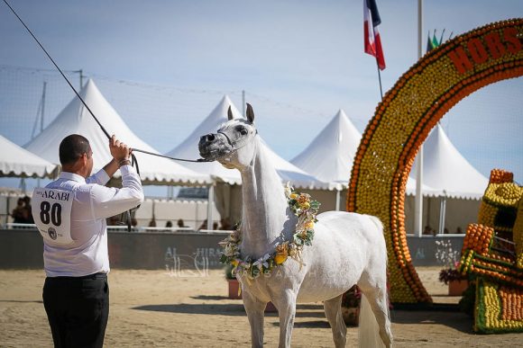 The beautiful horse, Nawfat al-Nayifat, returning to the Naf Stable gifted the Kingdom of Saudi Arabia the gold medal during the International Menton Championship for Arabian thoroughbred horse beauty 2019 after she was clad with the title “Heroine of Horses”.